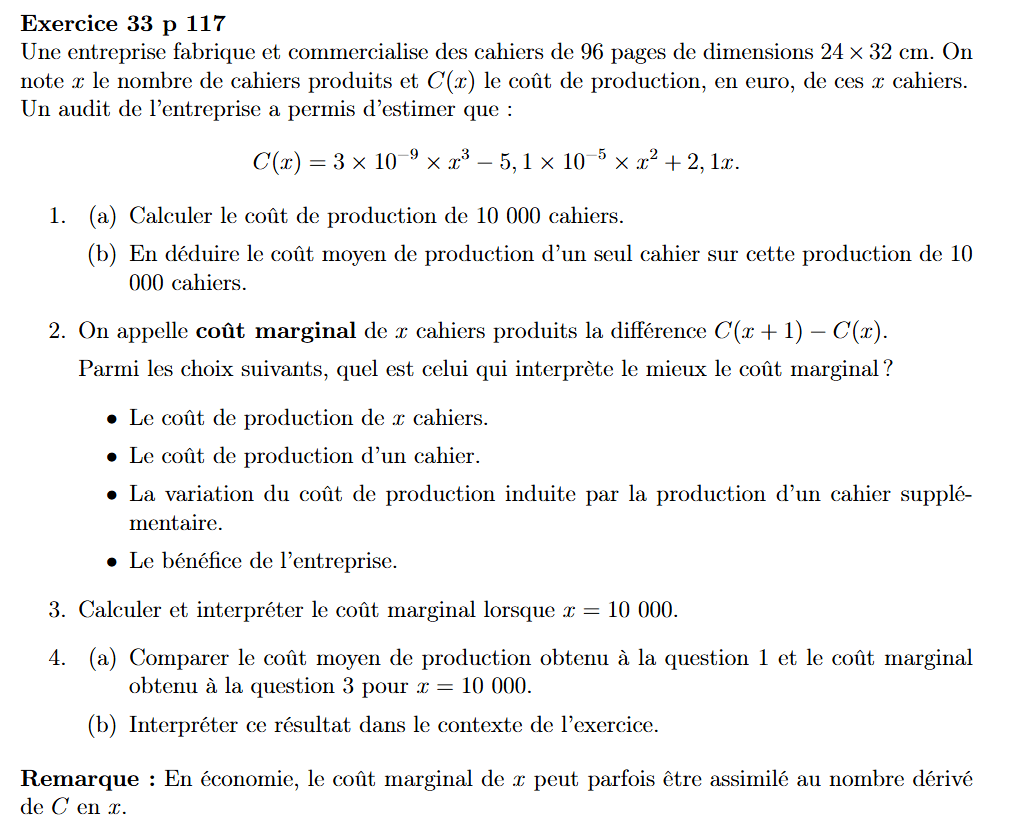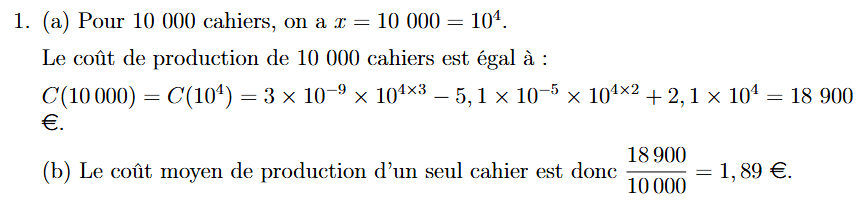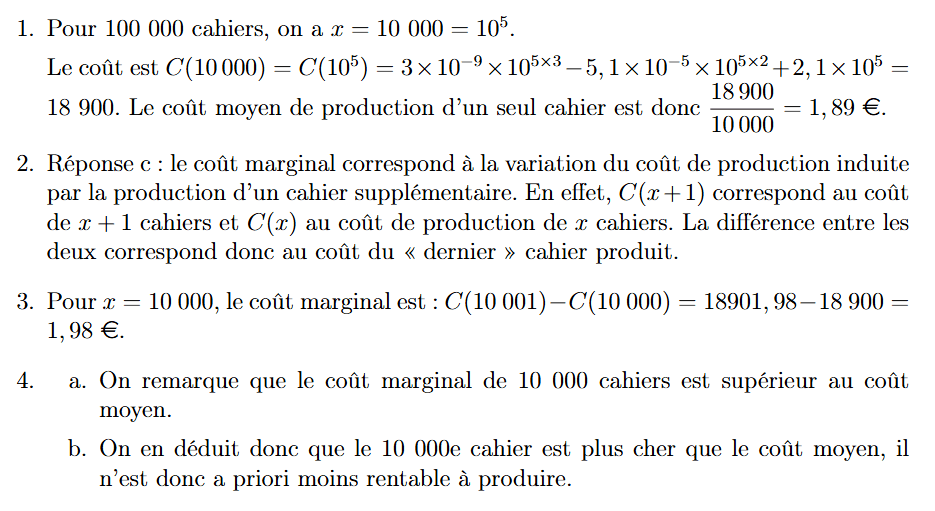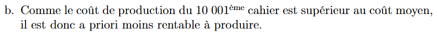 c. La valeur de \( f'(3) \) est le coefficient directeur de la tangente au point d'abscisse 3 donc, d’après la question précédente, le coefficient directeur de la droite représentant f, qui vaut \(-2\).