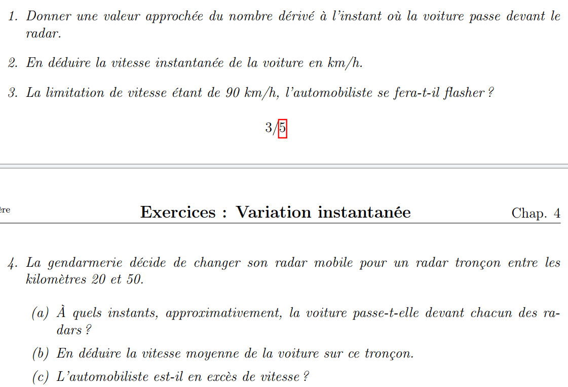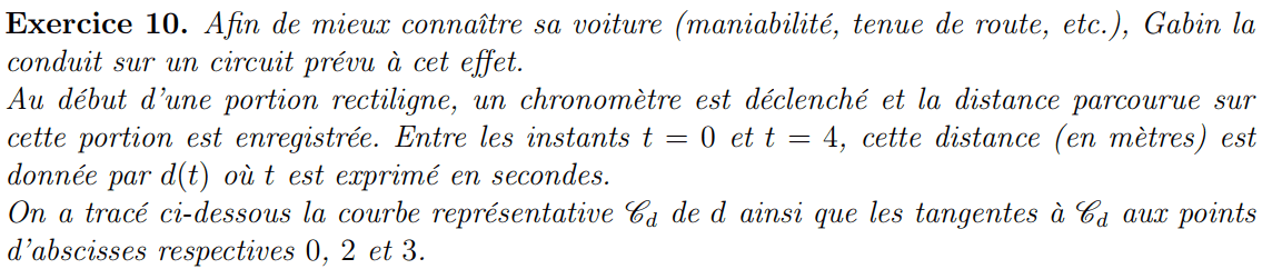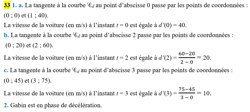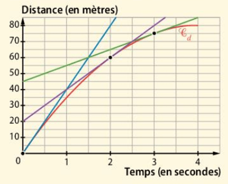 D'après la question précédente, la vitesse instantanée de la voiture est environ 2 km/min soit 120 km/h.