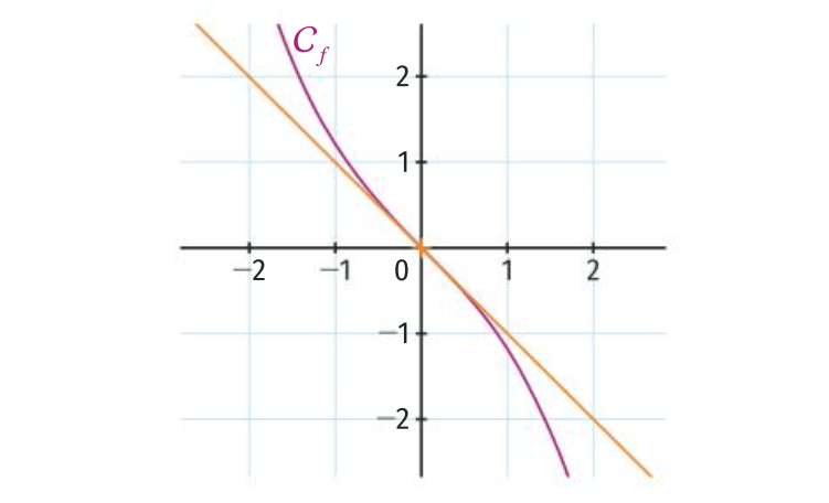 La droite verte est la tangente à la courbe représentative de \(f\) au point d’abscisse 0.