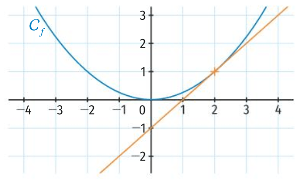 La droite bleue est la tangente à la courbe représentative de \(f\) au point d’abscisse 1.