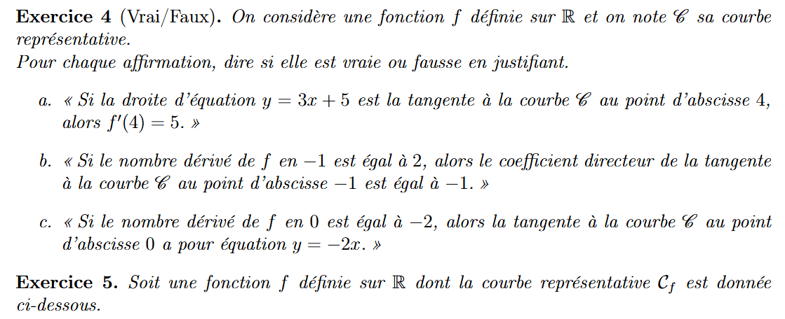 4. Donner l’équation de la tangente à la courbe d’une fonction f en un point d’abscisse a.