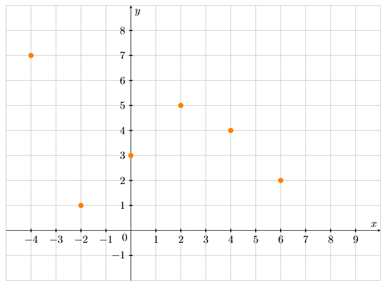 1. Dans le repère ci-dessous, placer les points correspondants de la courbe.