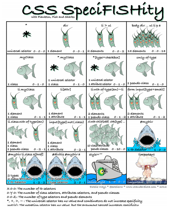 Credit: Chris Coyier @css-tricks.com (https://css-tricks.com/specifics-on-css-specificity/)
