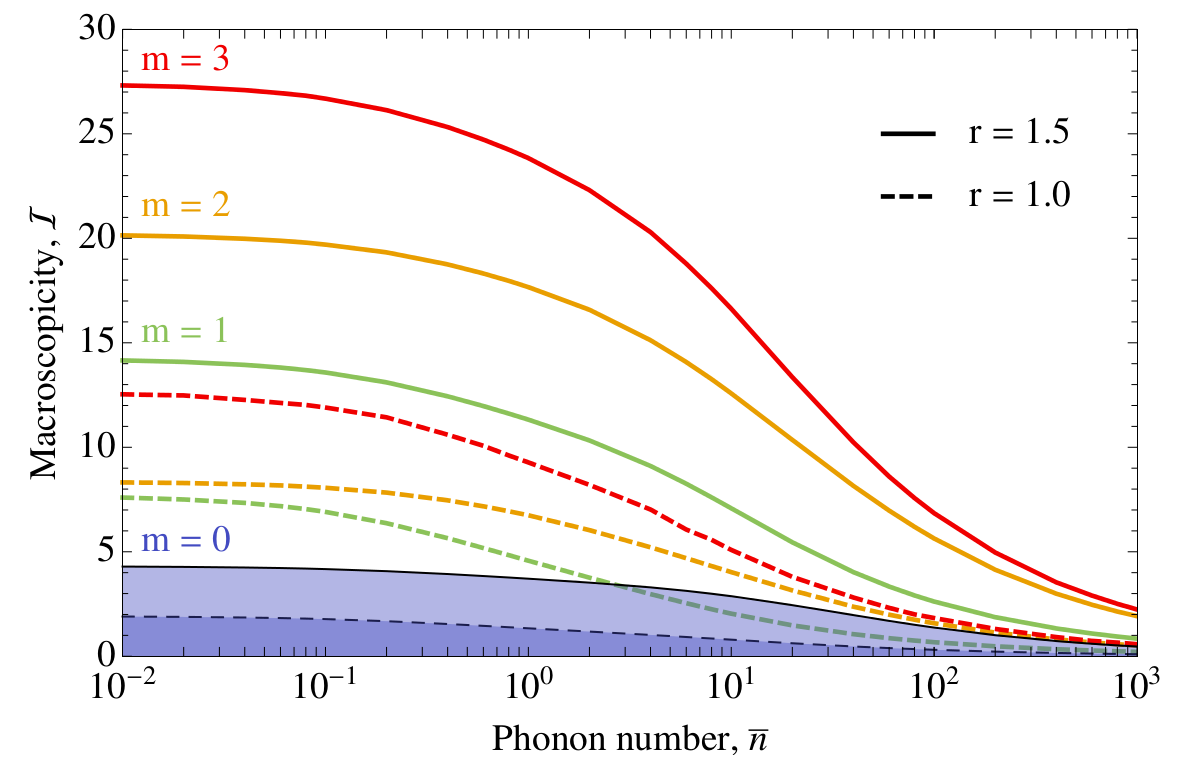 ideally, "macroscopicity" should also tell something about the macroscopic distinguishability or "distance" between component states,