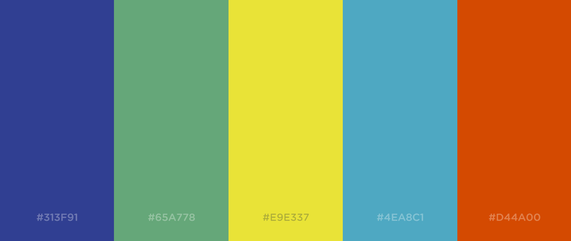 O azul e o verde transmitem a sensação de responsabilidade, compromisso e cuidado que a marca exige, mas não podemos nos esquecer de que estamos falando do mercado fitness. Então, precisamos colocar um pouco mais de "vida" nesta paleta. Portanto, coloquei tons vivos de amarelo e azul, além de um tom mais alaranjado, formando uma paleta alegre e, que em conjunto com o branco, trarão uma sensação de vitalidade e energia à marca.