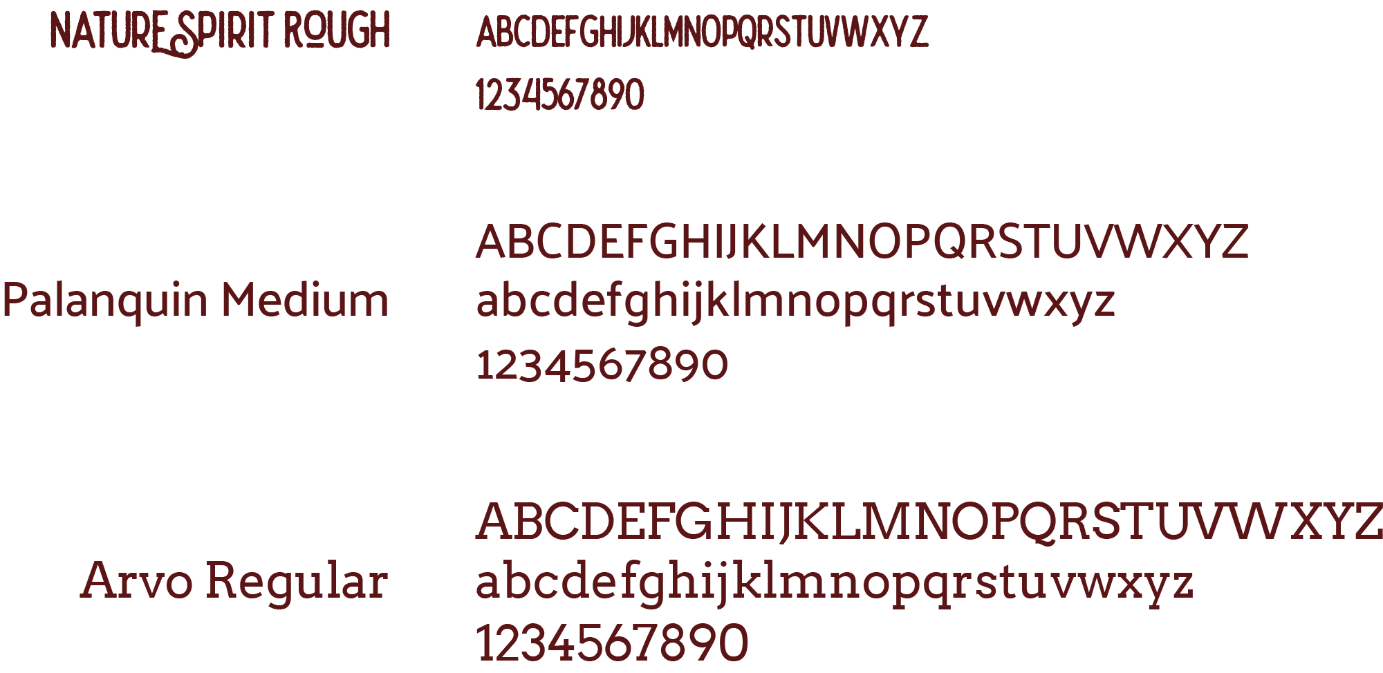 Acrescentei também sugestões de fontes de apoio para a comunicação: uma delas mais estilizada, porém com um aspecto rústico bem interessante. As outras duas são webfonts, próprias para utilização no site e eventuais plataformas online (as redes sociais não necessariamente estão incluídas nisso, mas por serem fontes muito bonitas, é possível utilizá-las sim!)
