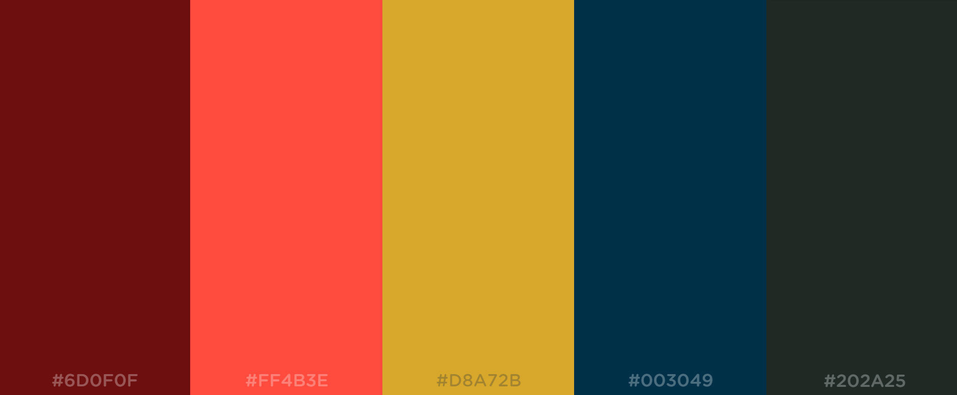 Além do dourado e do cornalina, adicionei dois tons escuros, um de azul e um cinza bem escuro, que proporcionam um excelente contraste com o dourado para aplicações estratégicas. Adicionei também um vermelho alaranjado bem brilhante, que pode ser utilizado em ações promocionais ou em um tom sobre tom junto com o cornalina.