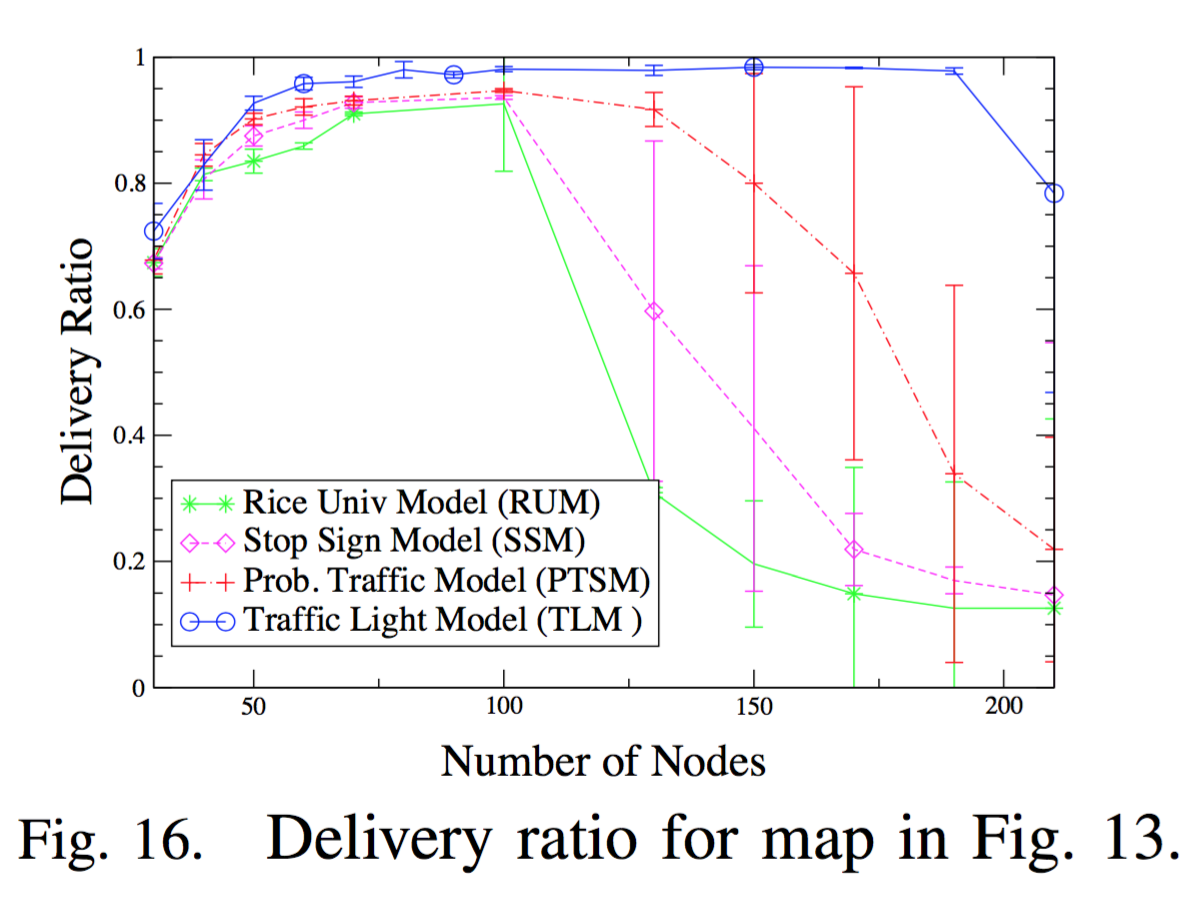 - The delivery ratio for each model increased with the number of nodes up to 100 nodes, followed by a rapid degradation in performance thereafter.