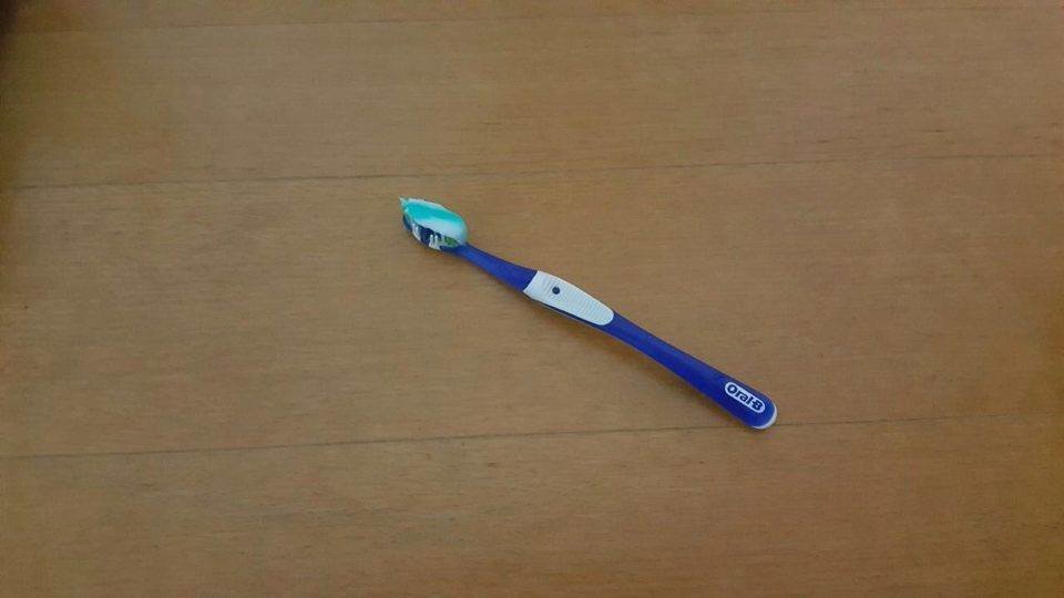 He brushes his teeth before bed.