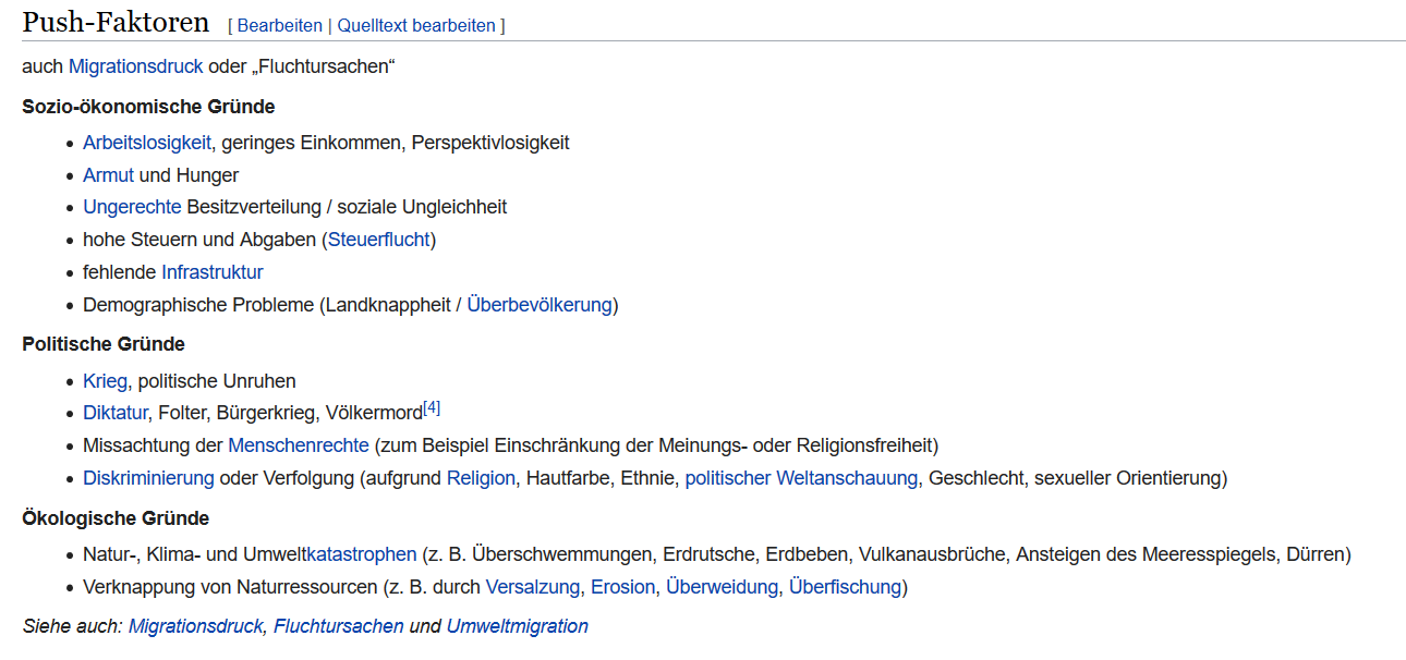 Welches sind die wichtigsten Schubfaktoren für Emigranten?