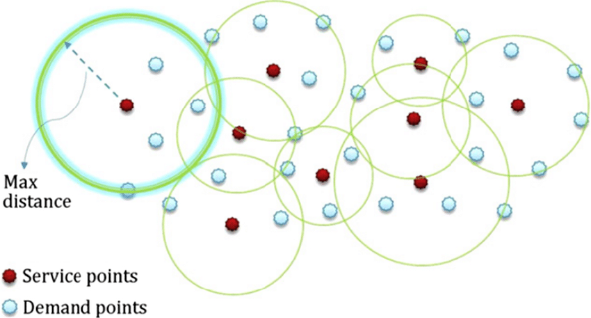 max [ distance(c,servicing(c)) for c where Community(c) ].