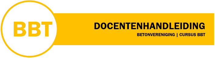 Opzet: Cursus van 12 lesavonden à 2,5 uur les. De lesavonden zijn wekelijks. Cursisten kunnen voorafgaand, tijdens en na de cursus alle leermiddelen/opdrachten/oefenmateriaal raadplegen in de online leeromgeving. Huiswerk en praktijkopdrachten en interactieve werkvormen behoren ook tot de cursus. De inhoud van de cursus is gebaseerd op een speciaal voor deze cursus geschreven dictaat van de Betonvereniging. Tijdens de lesavonden zijn er verschillende werkvormen aan de orde (denk aan kennisoverdracht, samenwerken, discussiëren, presenteren, werken met Excel, gaming/quizzes, brainstormen, enz.).