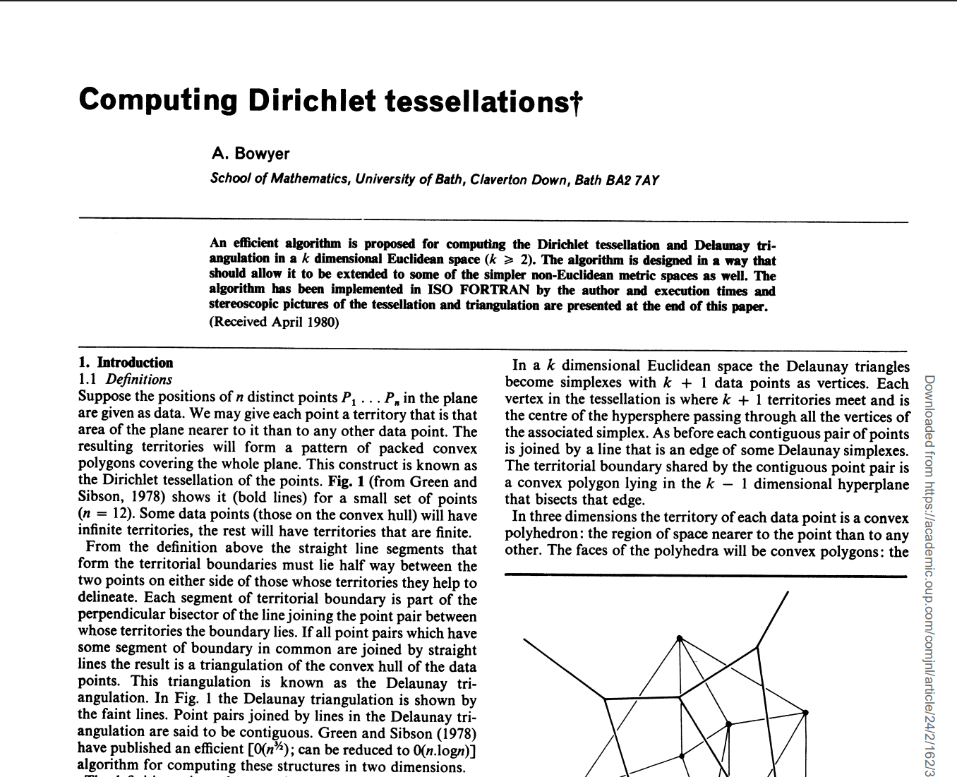 - Adrian Bowyer: Computing Dirichlet Tessellations. page 162-166