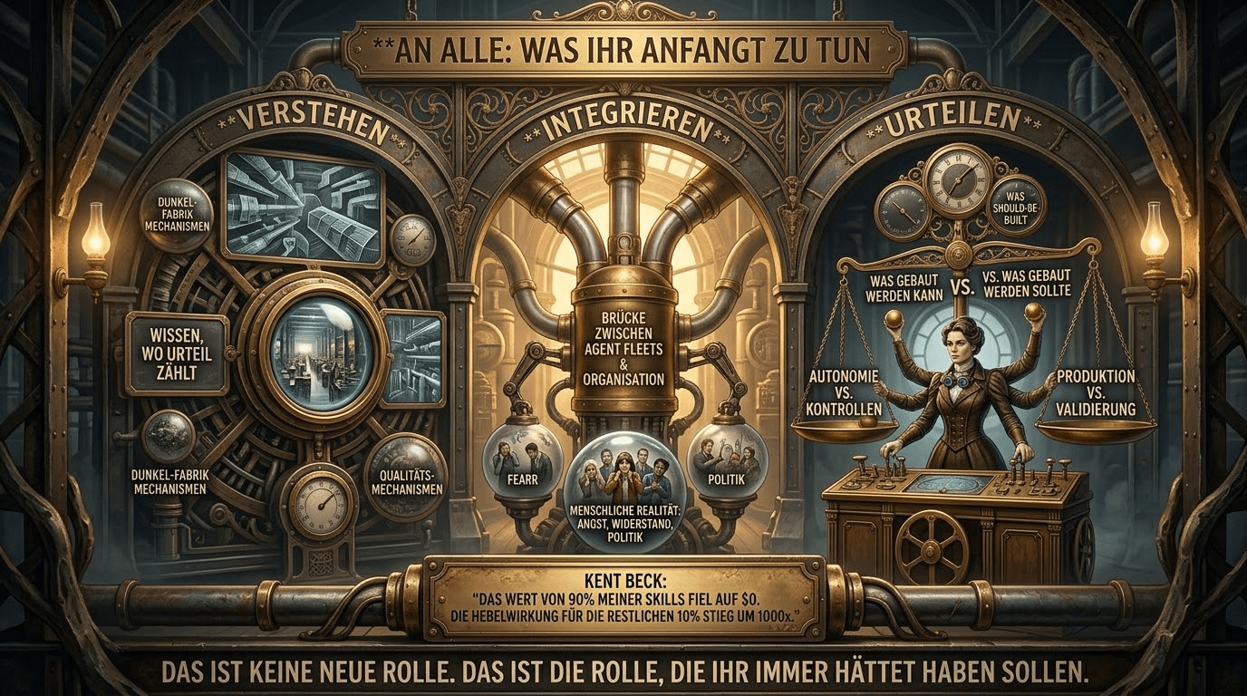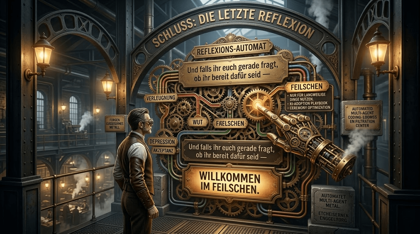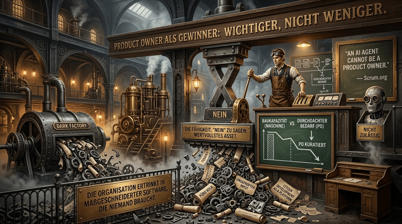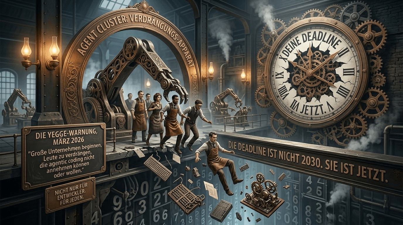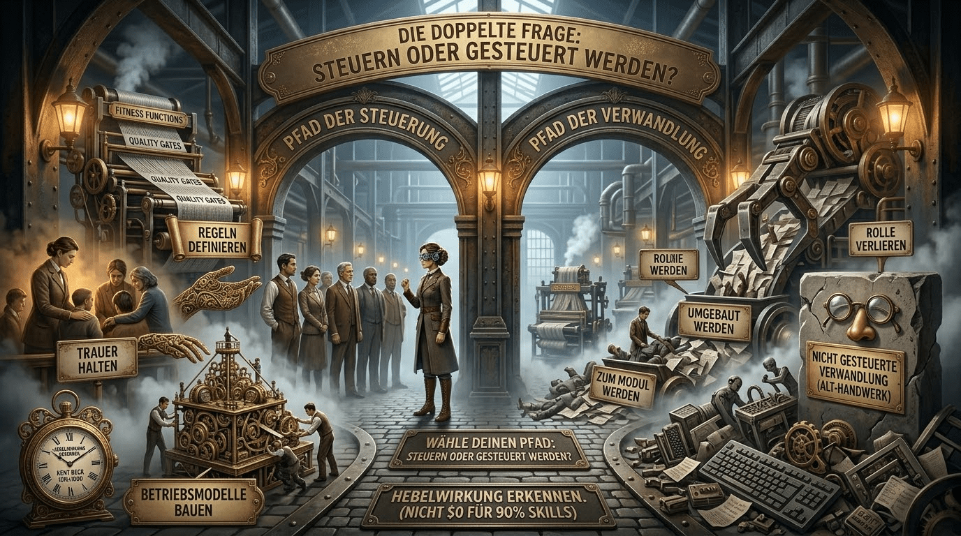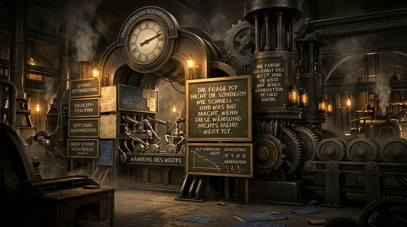 Kann ein Fließband einen Tischler ersetzen? Nein. Kann eine Möbelfabrik Tische herstellen – schneller, billiger, in jeder Stückzahl? Ja. Genau das passiert gerade in der Softwareentwicklung. Wir stehen nicht vor einer besseren Säge, sondern vor der Fabrik. Für Agilisten ist das unbequem. Output und Outcome – die Währung, in der wir unseren Wert bemessen haben – optimiert die KI schneller, billiger und mit jeder Generation besser. Sprint-Optimierung, Velocity-Tracking, Outcome-Maximierung: Das war unser Existenznachweis. Morgen erledigt das die Fabrik. Was bleibt, ist die eigentliche Aufgabe: Unternehmen durch die größte Transformation seit der Gründerzeit begleiten, strukturieren, orchestrieren – mit Existenzangst, Widerstand und dem vollen Paket an Veränderungsdynamik. Dieser Vortrag liefert die Landkarte dazu – und die Frage, ob wir bereit sind, unsere eigene Transformation zu machen
