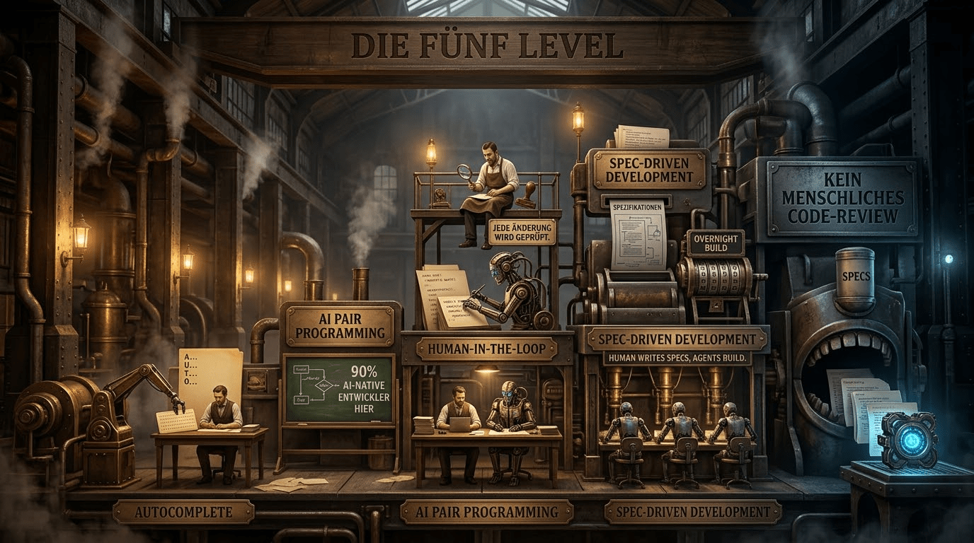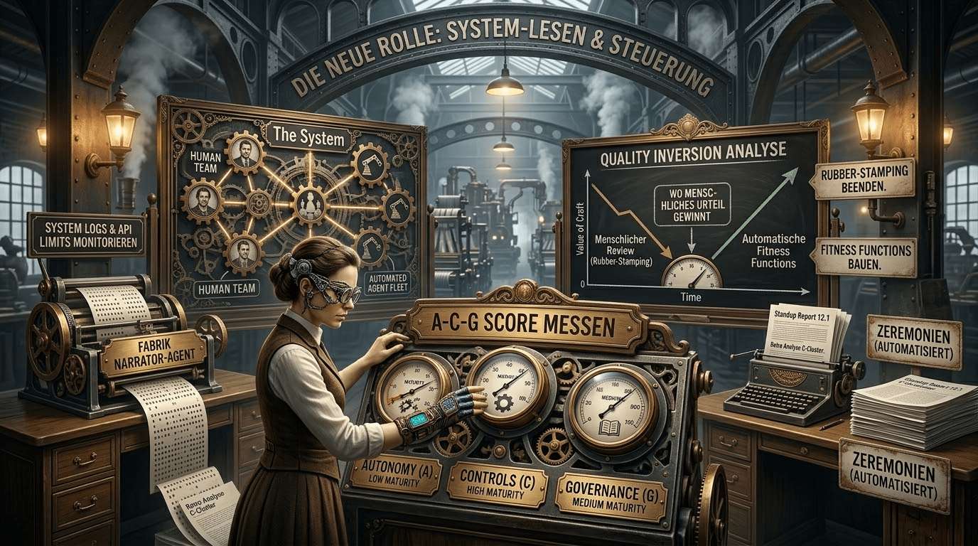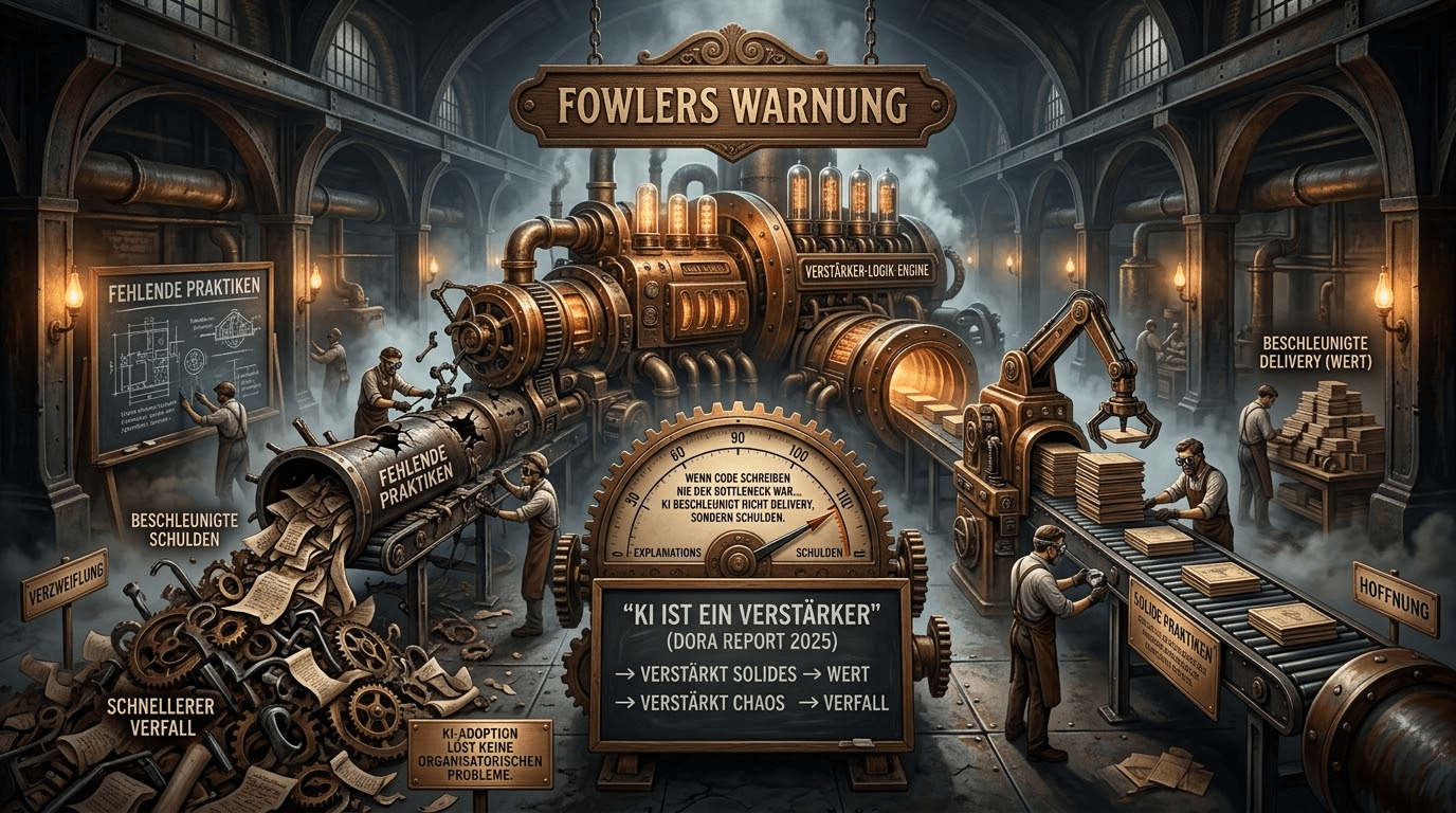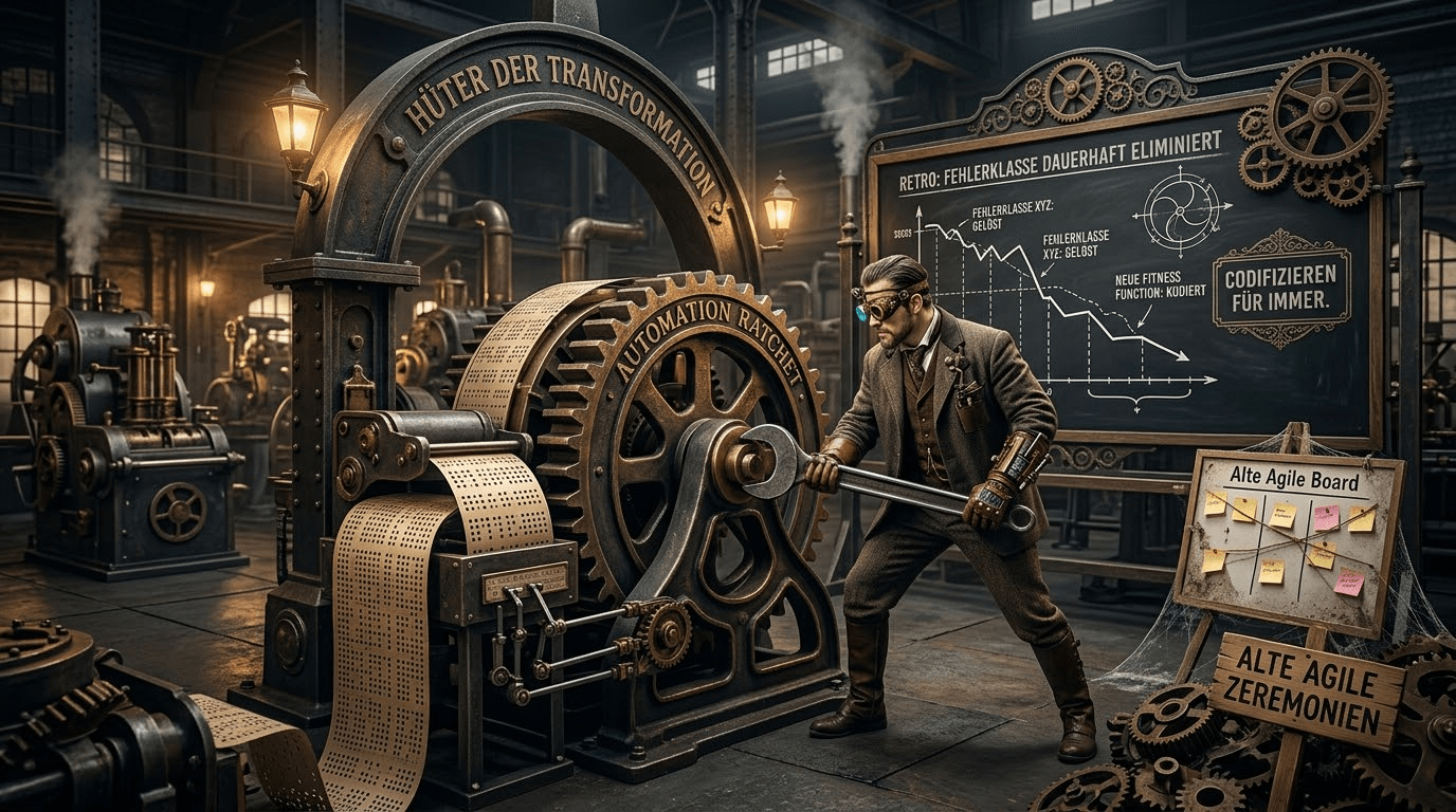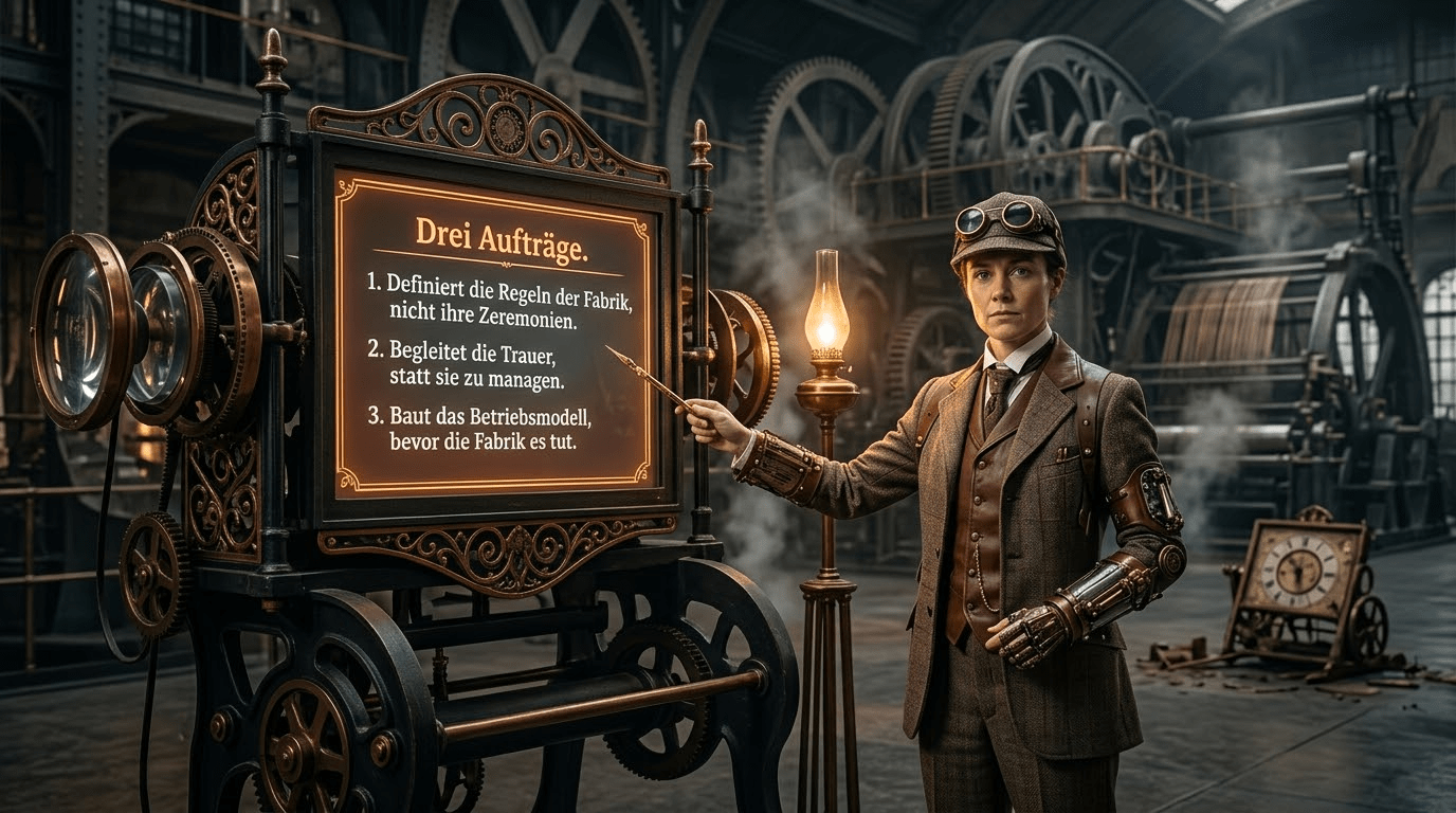 Kann ein Fließband einen Tischler ersetzen? Nein. Kann eine Möbelfabrik Tische herstellen – schneller, billiger, in jeder Stückzahl? Ja. Genau das passiert gerade in der Softwareentwicklung. Wir stehen nicht vor einer besseren Säge, sondern vor der Fabrik. Für Agilisten ist das unbequem. Output und Outcome – die Währung, in der wir unseren Wert bemessen haben – optimiert die KI schneller, billiger und mit jeder Generation besser. Sprint-Optimierung, Velocity-Tracking, Outcome-Maximierung: Das war unser Existenznachweis. Morgen erledigt das die Fabrik. Was bleibt, ist die eigentliche Aufgabe: Unternehmen durch die größte Transformation seit der Gründerzeit begleiten, strukturieren, orchestrieren – mit Existenzangst, Widerstand und dem vollen Paket an Veränderungsdynamik. Dieser Vortrag liefert die Landkarte dazu – und die Frage, ob wir bereit sind, unsere eigene Transformation zu machen
