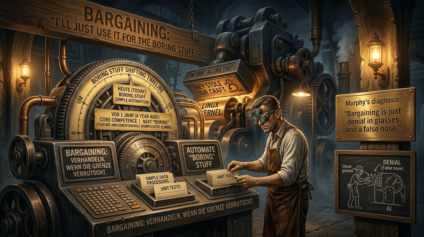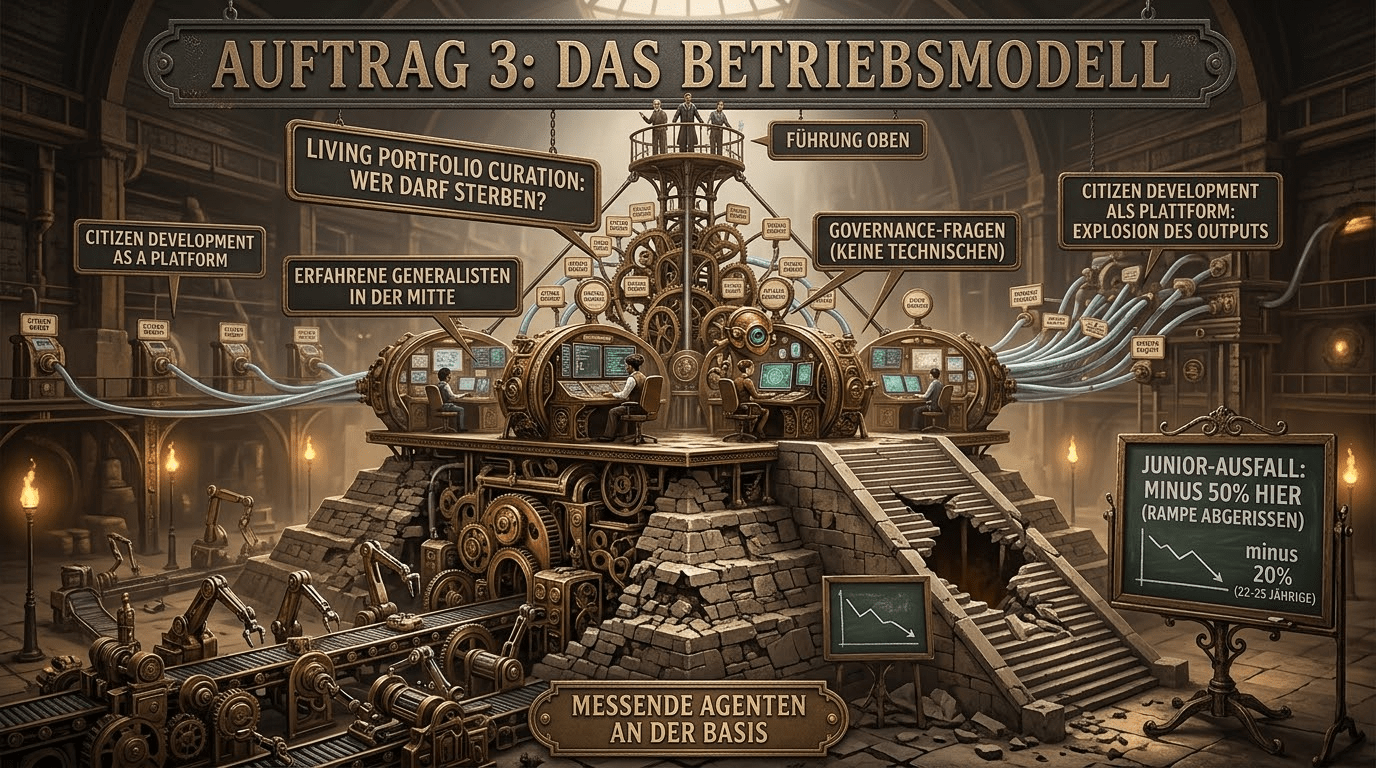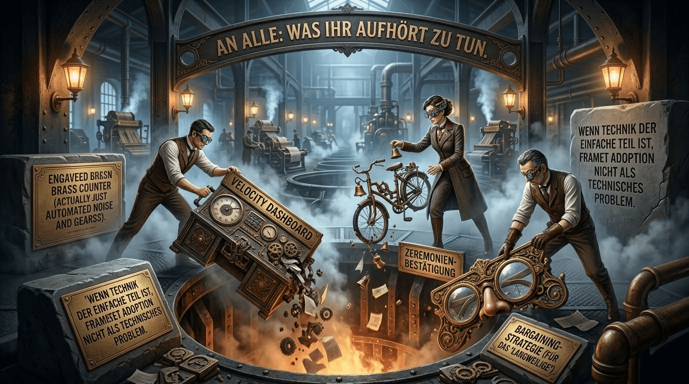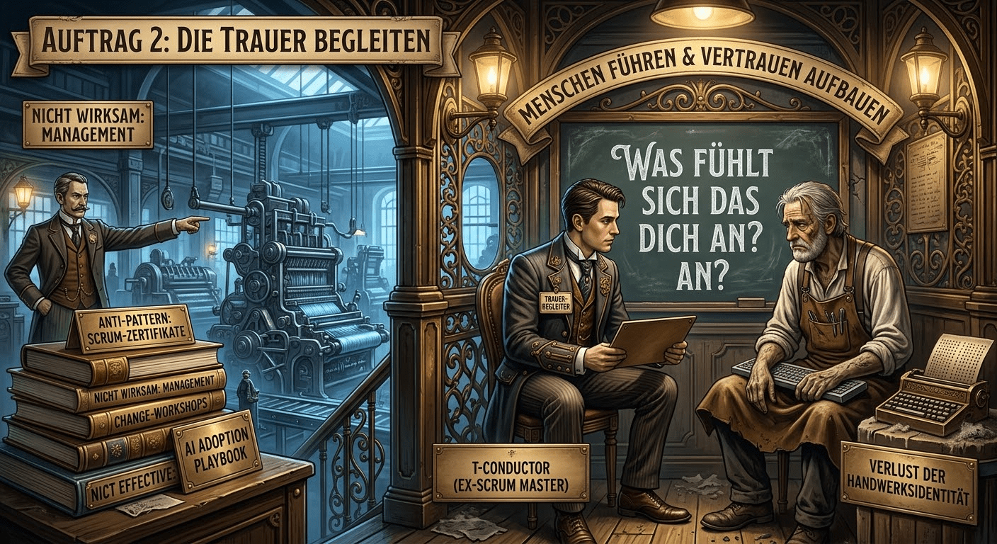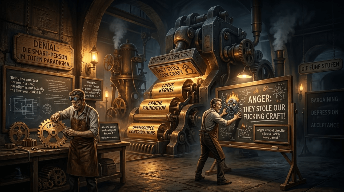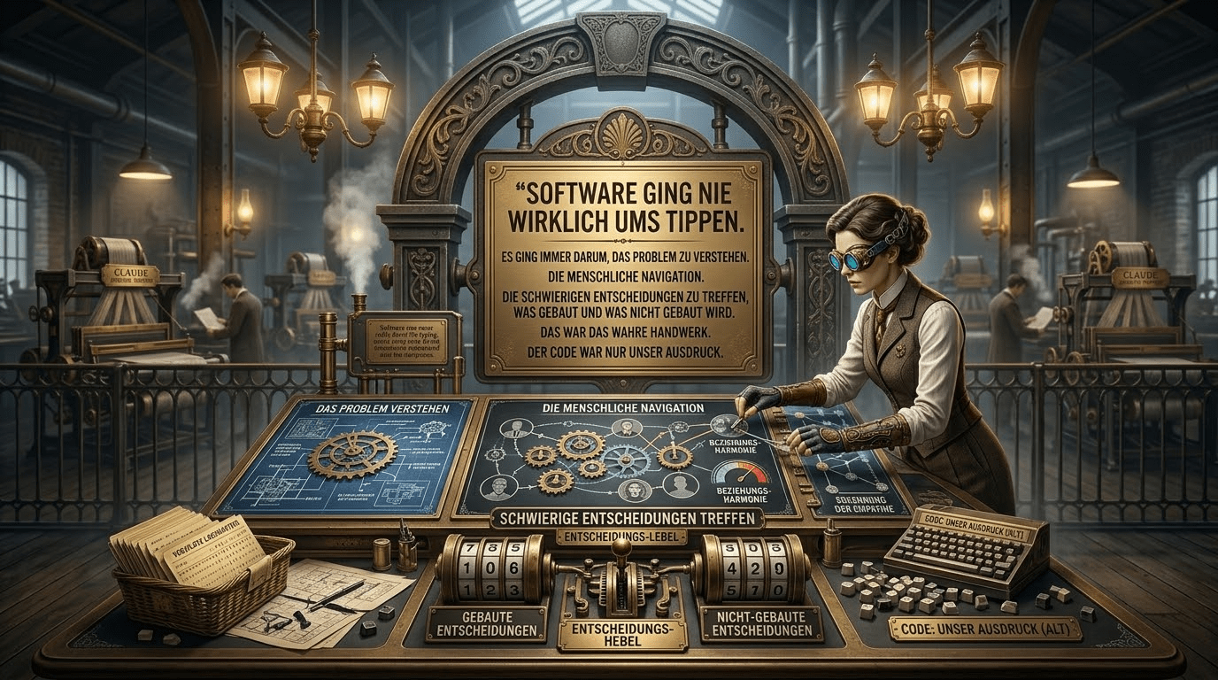 Kann ein Fließband einen Tischler ersetzen? Nein. Kann eine Möbelfabrik Tische herstellen – schneller, billiger, in jeder Stückzahl? Ja. Genau das passiert gerade in der Softwareentwicklung. Wir stehen nicht vor einer besseren Säge, sondern vor der Fabrik. Für Agilisten ist das unbequem. Output und Outcome – die Währung, in der wir unseren Wert bemessen haben – optimiert die KI schneller, billiger und mit jeder Generation besser. Sprint-Optimierung, Velocity-Tracking, Outcome-Maximierung: Das war unser Existenznachweis. Morgen erledigt das die Fabrik. Was bleibt, ist die eigentliche Aufgabe: Unternehmen durch die größte Transformation seit der Gründerzeit begleiten, strukturieren, orchestrieren – mit Existenzangst, Widerstand und dem vollen Paket an Veränderungsdynamik. Dieser Vortrag liefert die Landkarte dazu – und die Frage, ob wir bereit sind, unsere eigene Transformation zu machen
