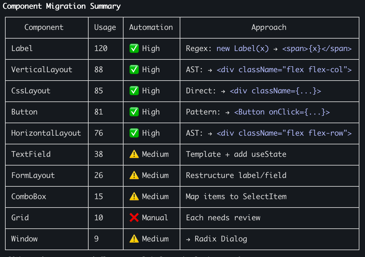 - Nicht für alles in Vaadin gibt es ein React-pendant - Vollständigkeit der Transformatoren auf Basis der Extraktoren sicherstellen