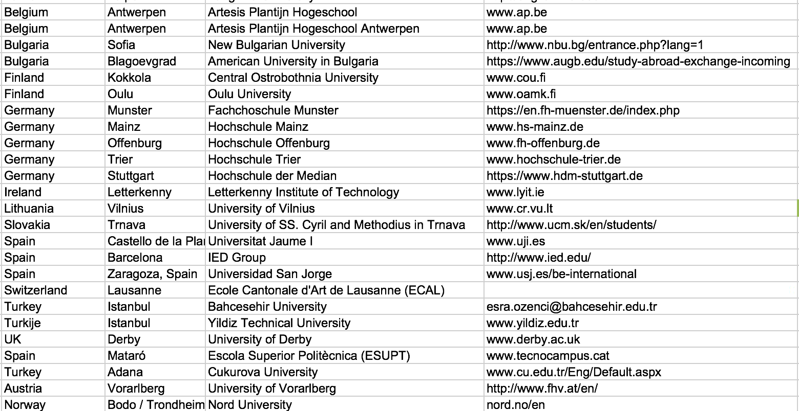 Partner universities