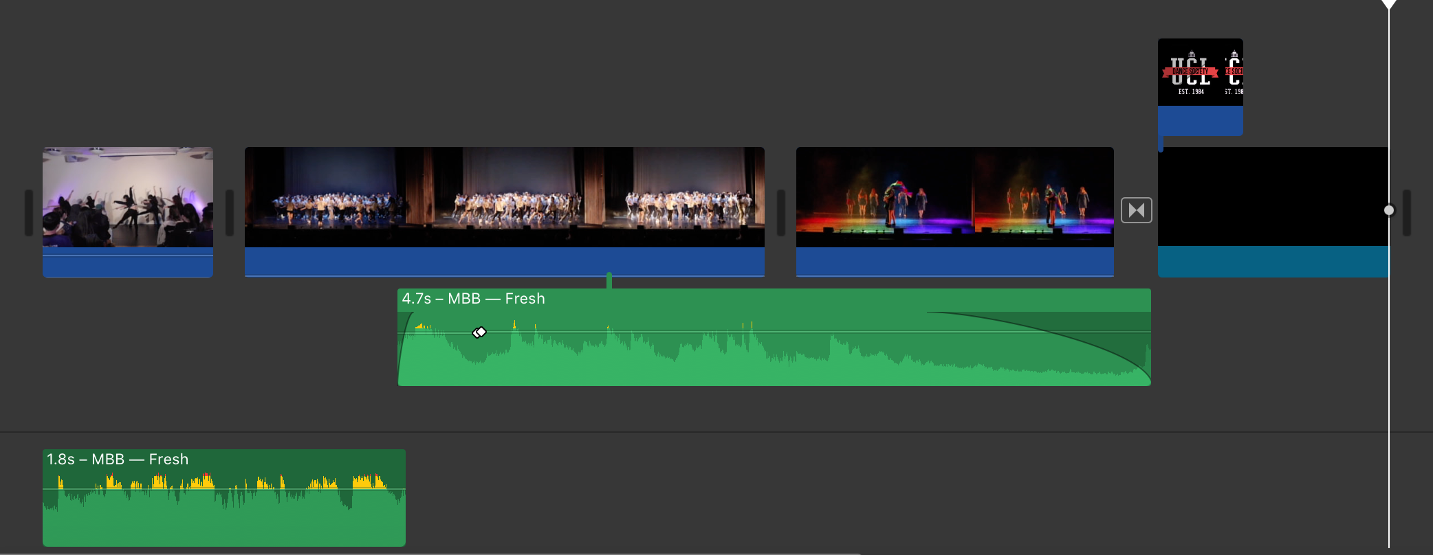 Fading between audio clips can be quite helpful in smoothing out transitions between songs and even between parts of the same song. In this video the music fades between a middle and end bit of a song and fades out at the end of the video.