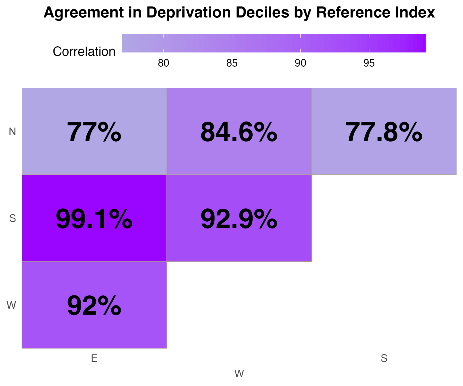 | IMD Decile | E | N | S | W |
