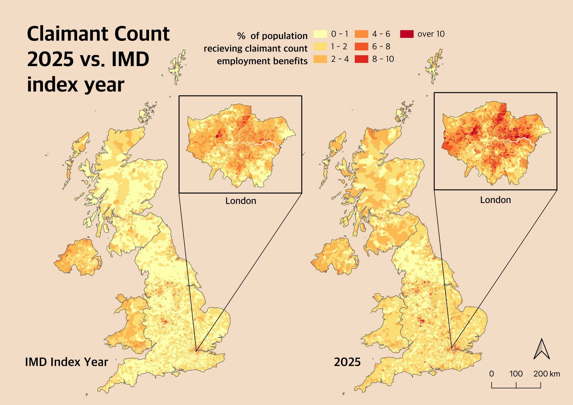- Model overall IMD scores as function of Claimant Count (CC)