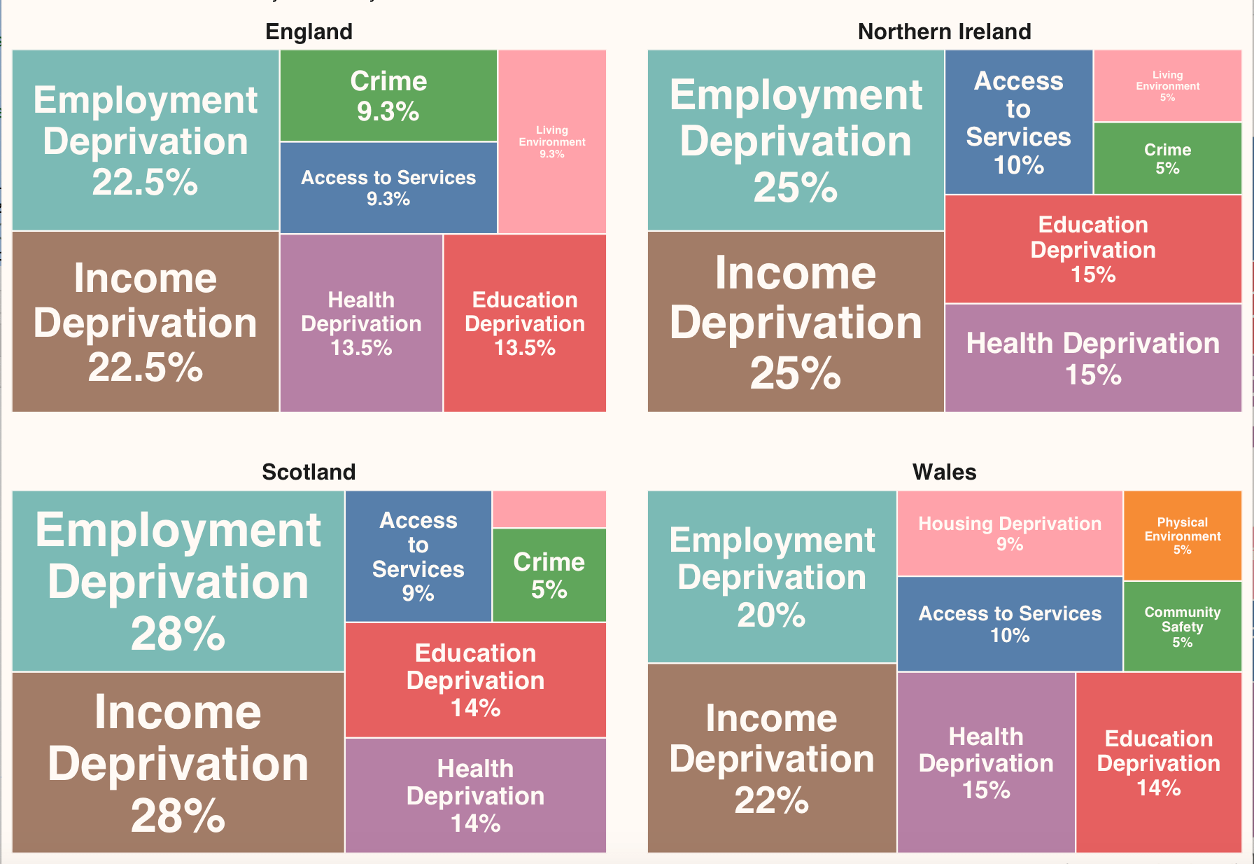 - Across nations IMD's measure deprivation across broadly similar dimensions