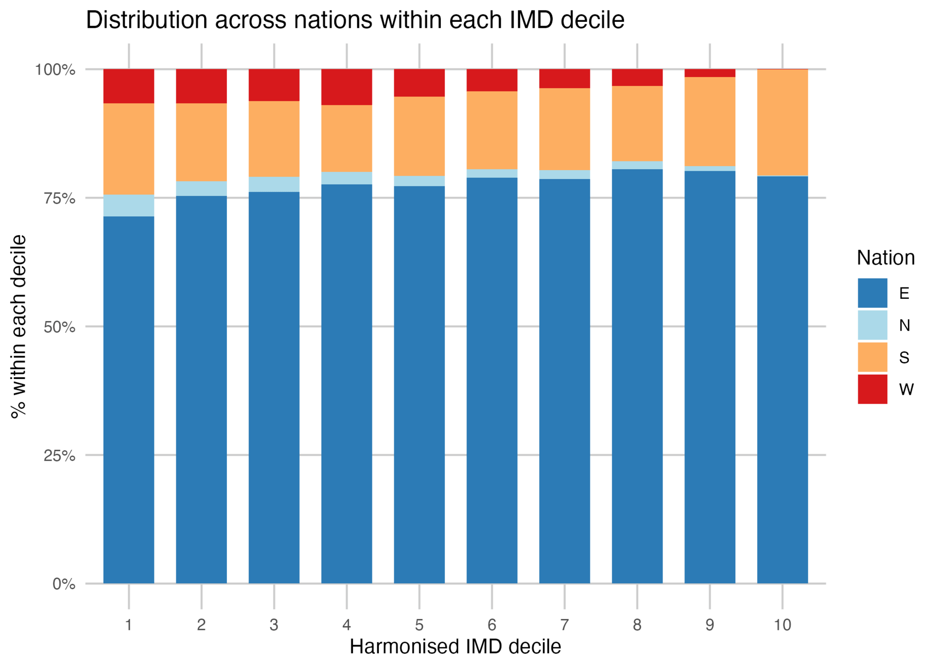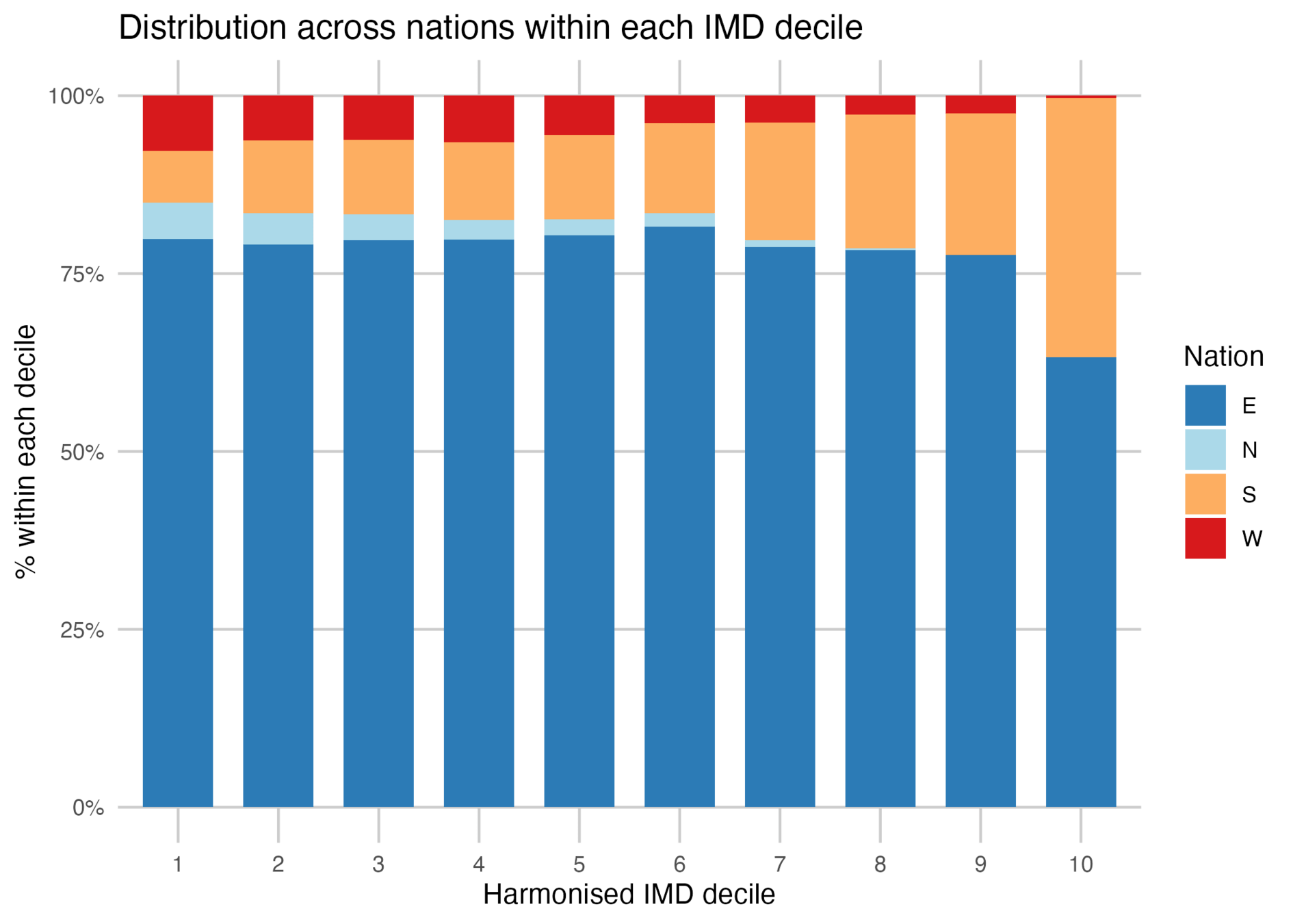 | IMD Decile distribution | E | N | S | W |