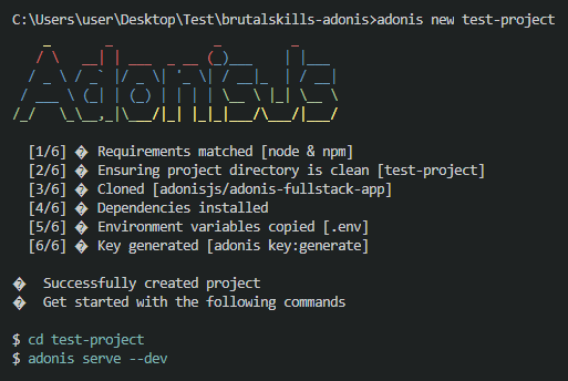 >adonis new test-project> npx @adonisjs/cli new test-project# Fullstack