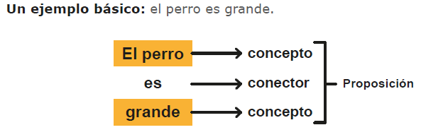 La proposición: Es una frase que consta de dos o más conceptos unidos por palabras enlace proporcionando un significado determinado.