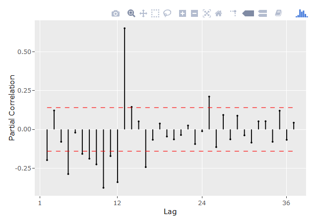 type = "normal", style="normal")BETS::corrgram(diff(data), lag.max = 36,
