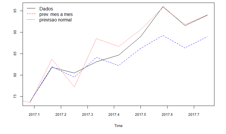 Previsão mês a mês, ou seja 1 passo, sucessivamente, a frente de janeiro até a outubro de 2017;