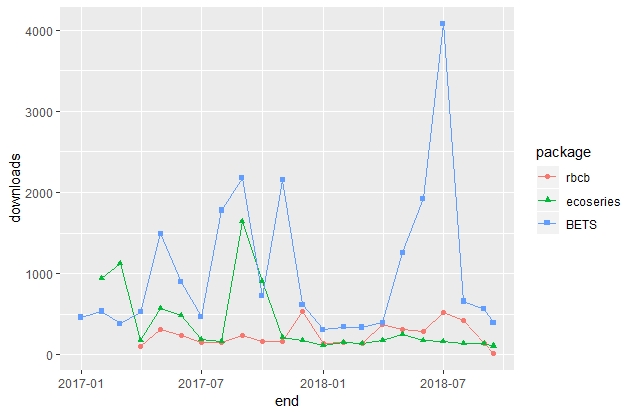 Imagem: Número de download dos pacotes ao longo do tempo