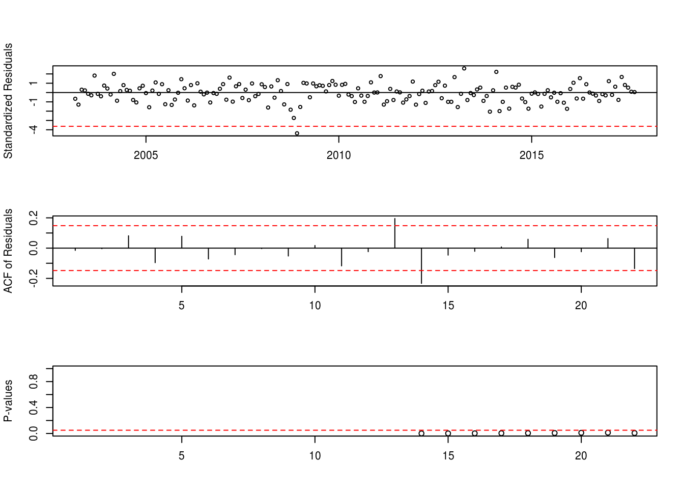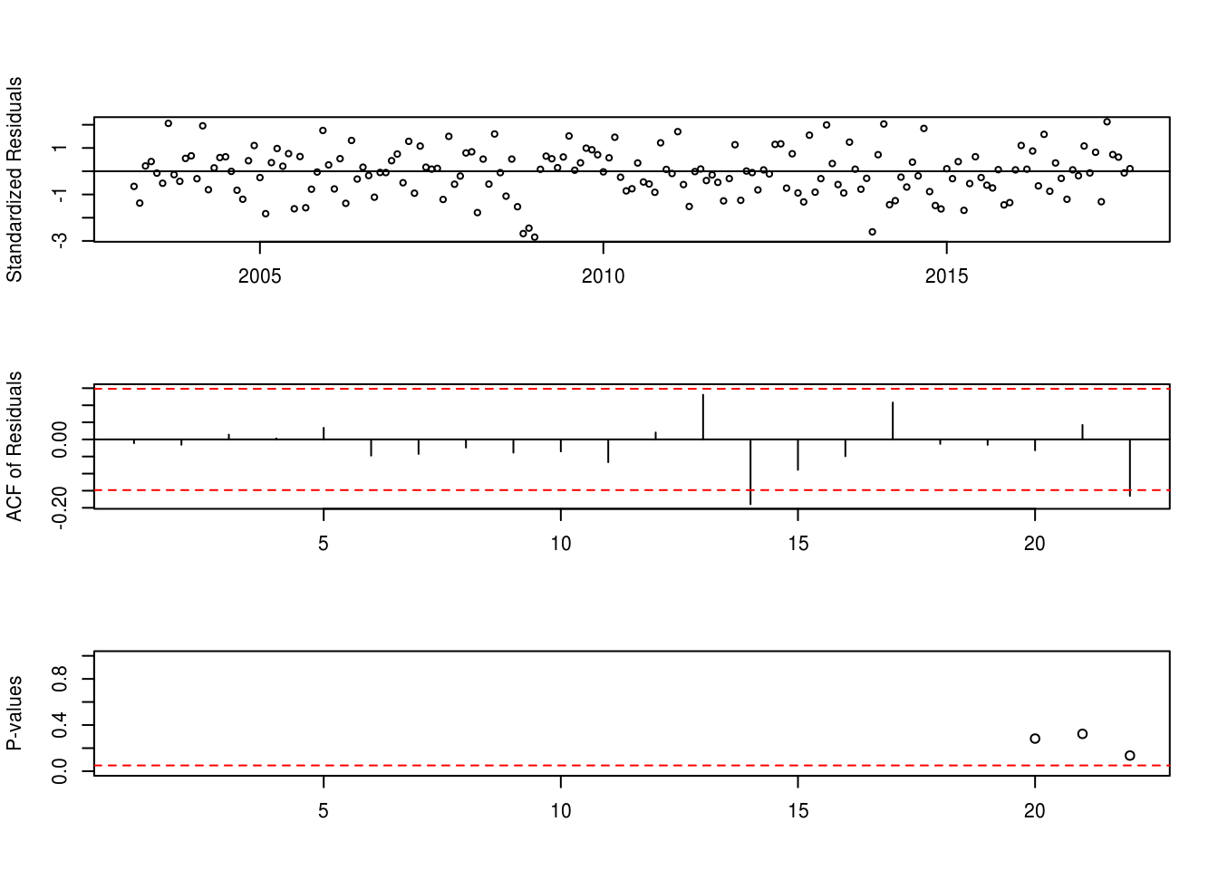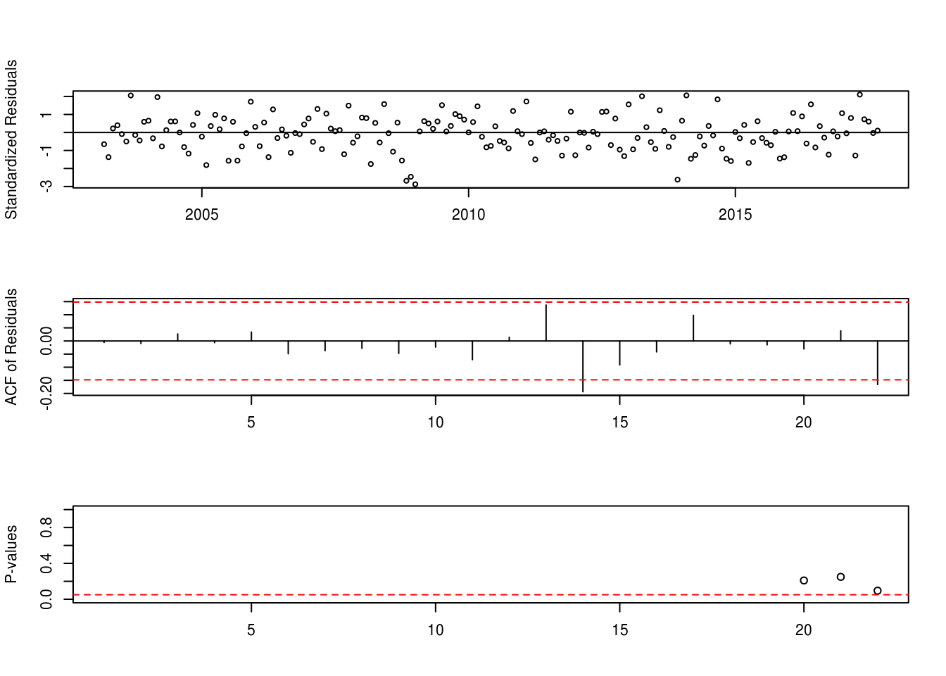 tsdiag(modelo2)Modelo Considerando a v.a. Dummy