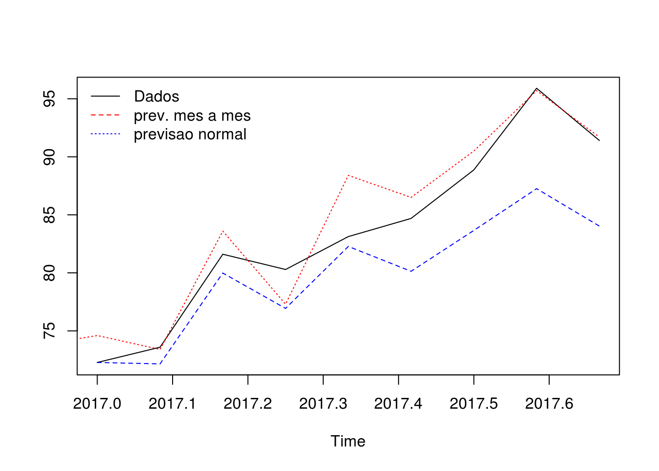 Na modelagem, fizemos dois tipos de previsão para os dados referente a 2017, de janeiro a setembro: