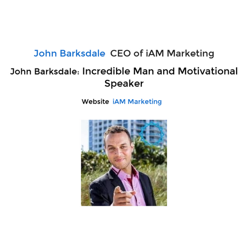 John Barksdale: John Barksdale is the founder of iAM Marketing. John Barksdale is an international businessman and is also an in-demand motivational speaker.