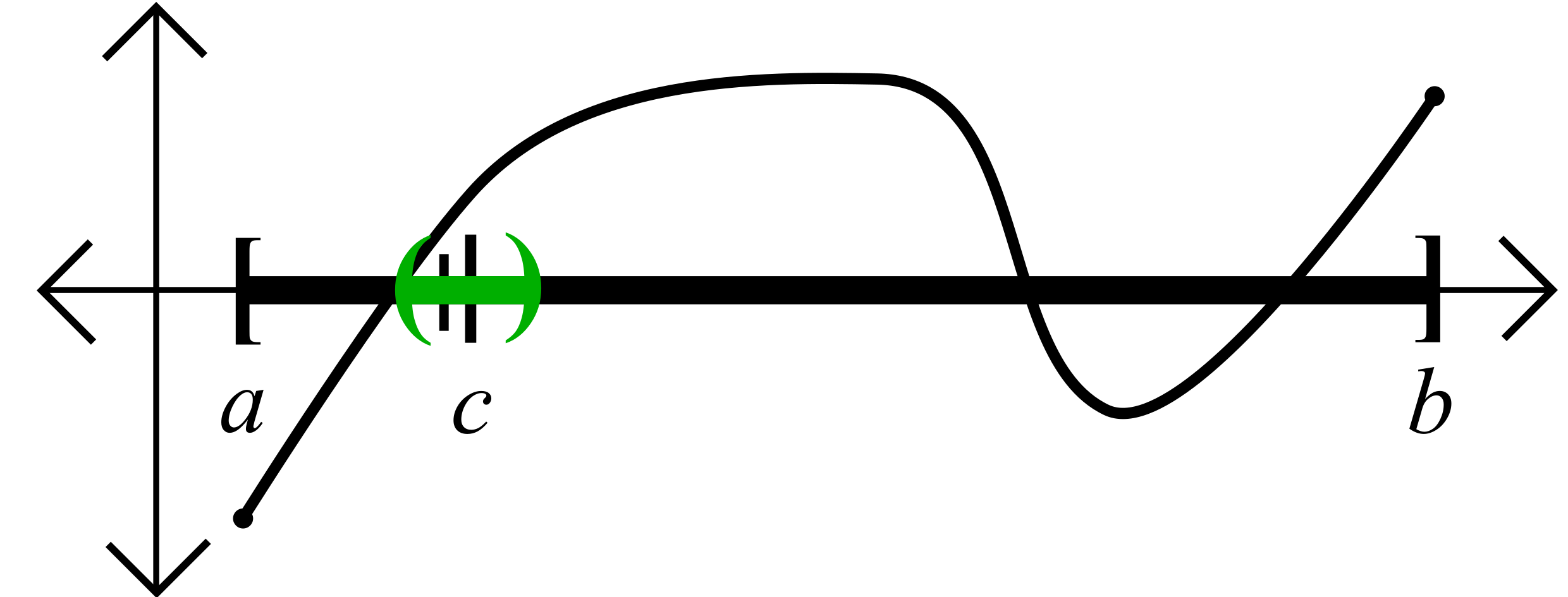 - If \(a=c\), then from the Bump Theorem (Negative Version) \(f(x)<0\) for all \(x\in[a,a+\frac{\delta}{2}].\)