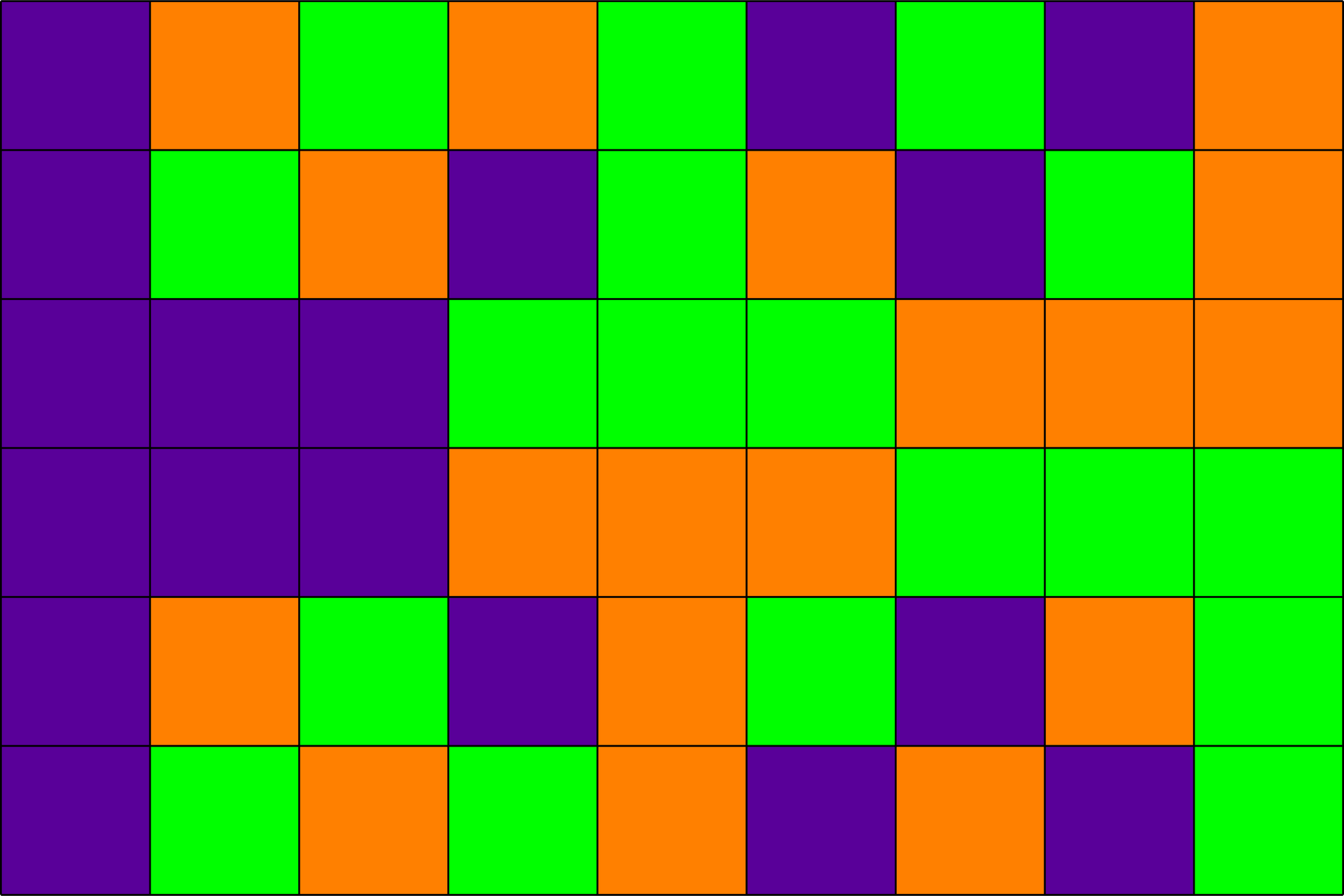 \[\begin{array}{c} 1\\ 2\\ 4 \end{array}\left[\begin{array}{ccccccc} 1 & \omega & \omega^2 & \omega^3 & \omega^4 & \omega^5 & \omega^6\\ 1 & \omega^2 & \omega^4 & \omega^6 & \omega & \omega^3 & \omega^5\\ 1 & \omega^4 & \omega & \omega^5 & \omega^2 & \omega^6 & \omega^3 \end{array}\right]\]