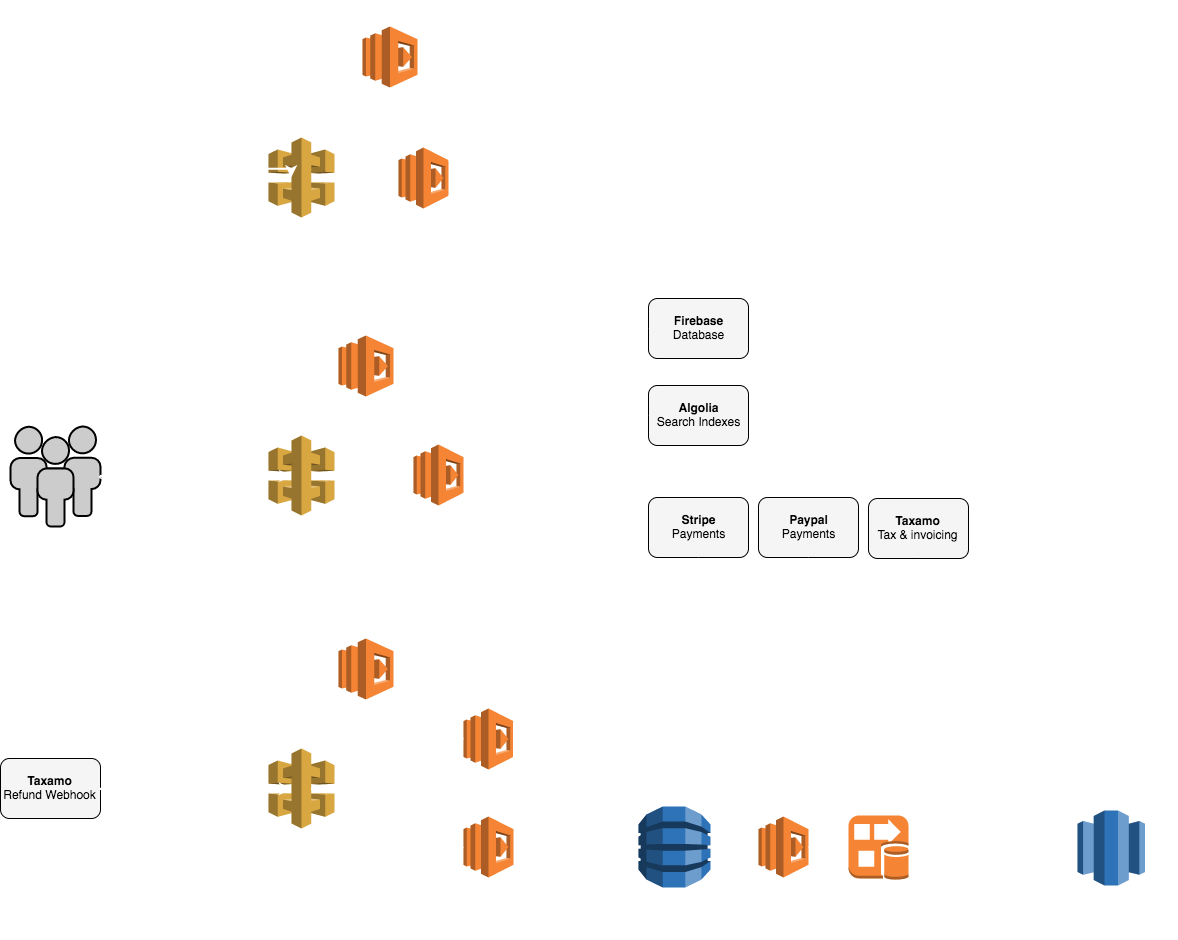 - Expose APIs between services, GraphQL APIs, SNS Topics