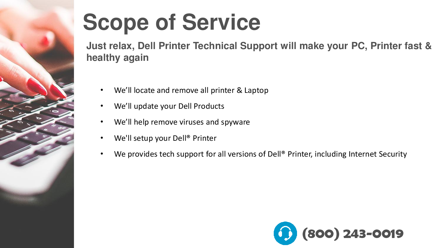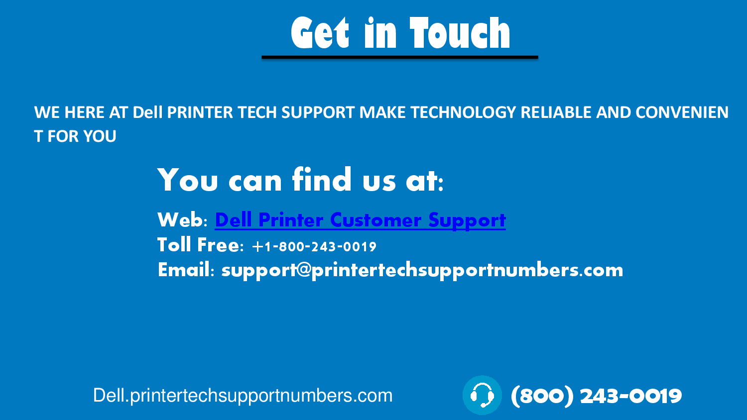 Dell Printer Support Phone Number +1-800-243-0019 is an independent technical support service provider, provides high level of technical support related to Dell printer technical issues. We are available 24*7*365 for instant Dell technical support to printers’ end-users as and when required with certified technicians. For More details please visit here: Website:- http://dell.printertechsupportnumbers.com/ Email:- support@printertechsupportnumbers.com Toll Free:- +1(800) 243-0019 Contact Address: 1450 S. Alameda Street Los Angeles, California 90021 Facebook:- https://www.facebook.com/printersupportphonenumber/ Twitter:- https://twitter.com/printer_Supprt