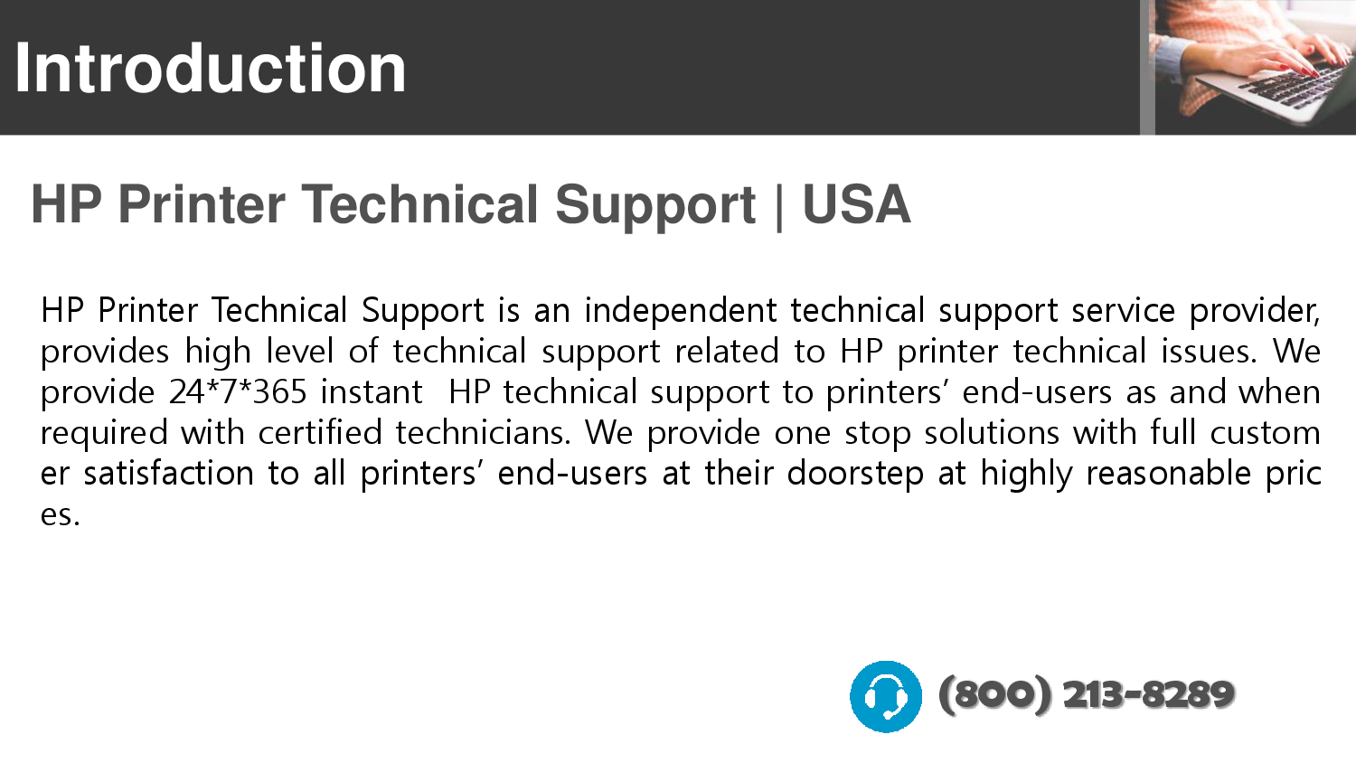 HP Printer Technical Support is an independent technical support service provider, provides high level of technical support related to HP printer technical issues. We are available 24*7*365 for instant HP technical support to printers’ end-users as and when required with certified technicians. For More details please visit here: Website:- http://hp.printertechsupportnumbers.com/ Email:- support@printertechsupportnumbers.com Toll Free:- +1(800) 213-8289 Contact Address: 1450 S. Alameda Street Los Angeles, California 90021 Facebook:- https://www.facebook.com/printersupportphonenumber/ Twitter:- https://twitter.com/printer_Supprt