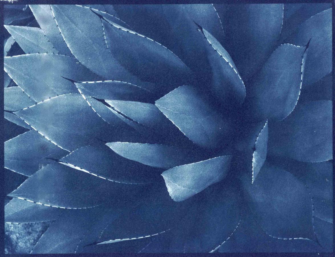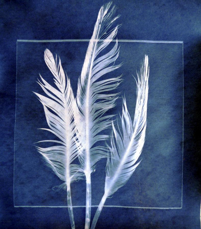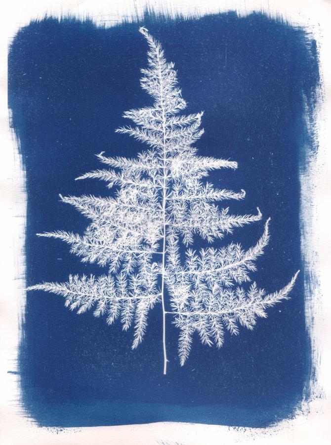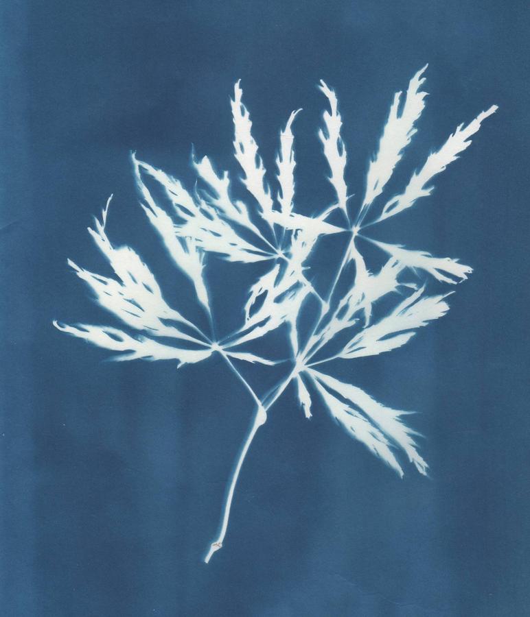 a cyanotype is made when your paper is exposed to direct sunlight. any part of the paper that the sun touches will turn blue and any part that is blocked from the sun will turn white.