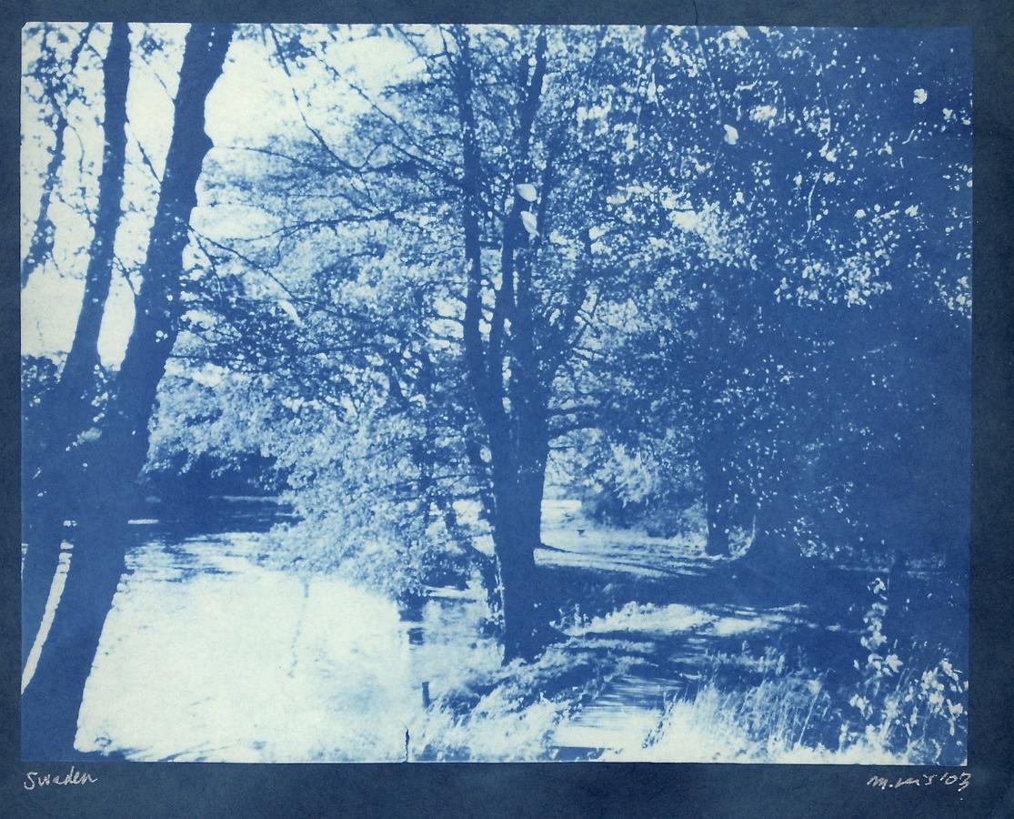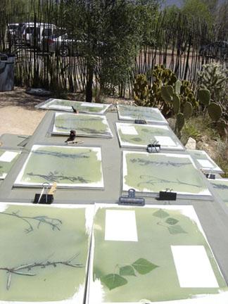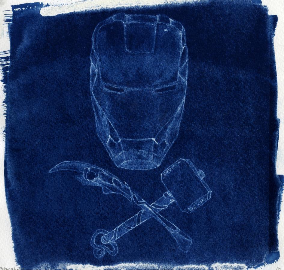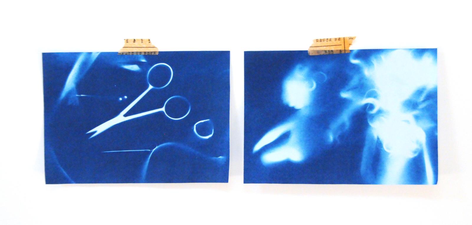 a cyanotype is made when your paper is exposed to direct sunlight. any part of the paper that the sun touches will turn blue and any part that is blocked from the sun will turn white.