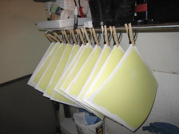 the last step is to dry the cyanotype by hanging it on the clothes line. once it is dry you have your finished cyanotype!