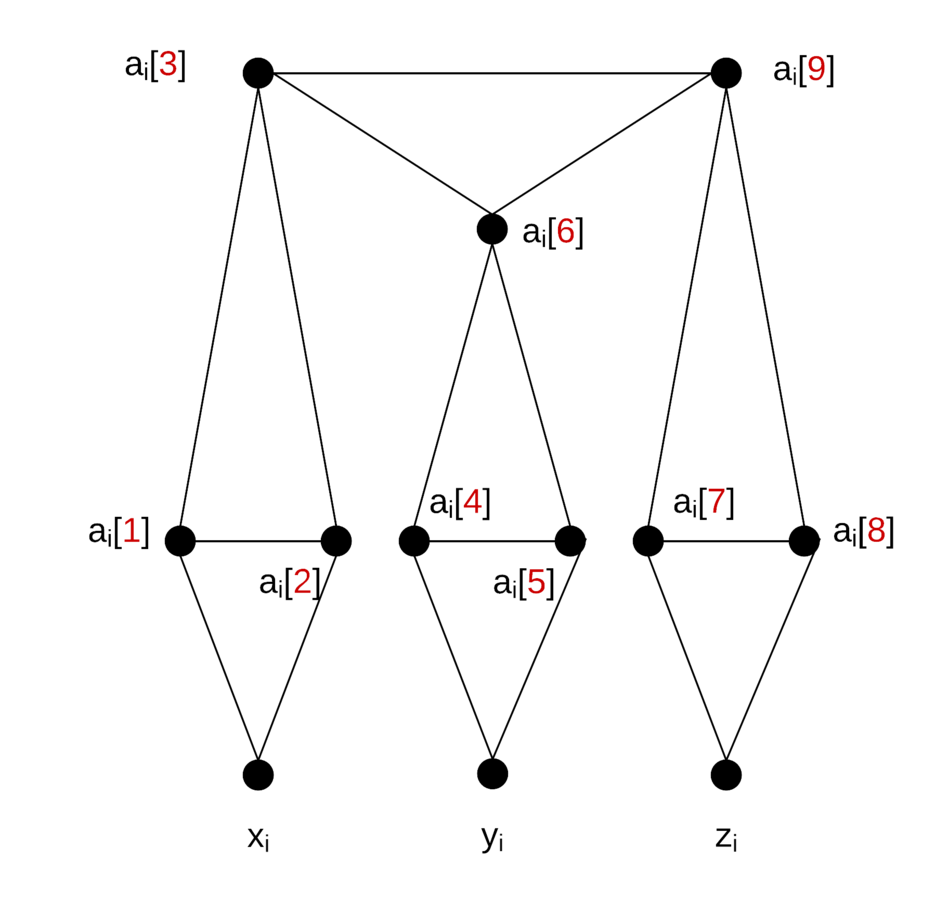 - The local replacement substitutes for each such subset ci = { xi , yi , zi } ∈ C the collection Ei of 18 edges shown in the figure below: