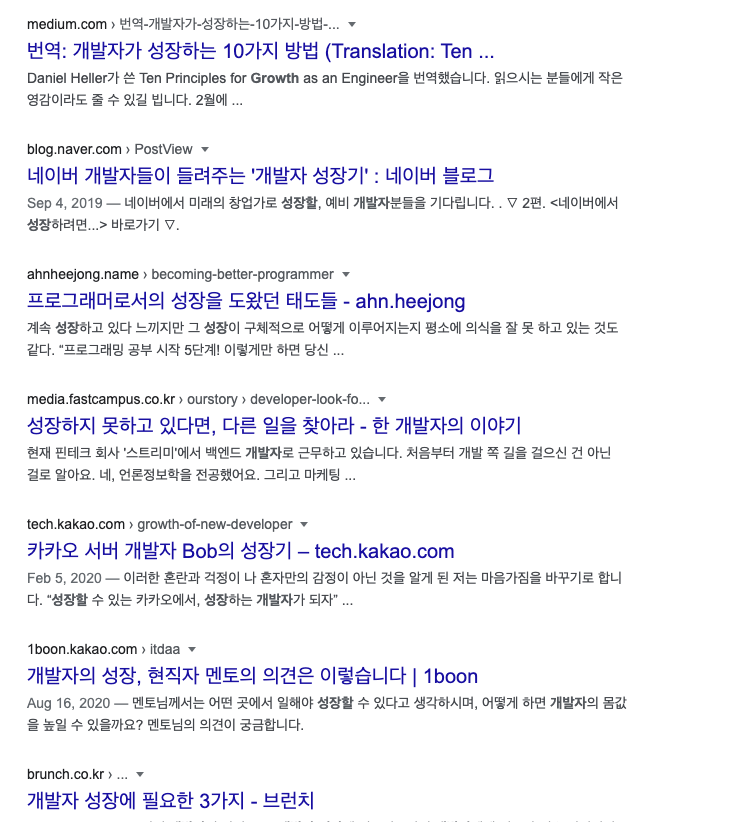 네이버 '개발자 성장 검색 결과'