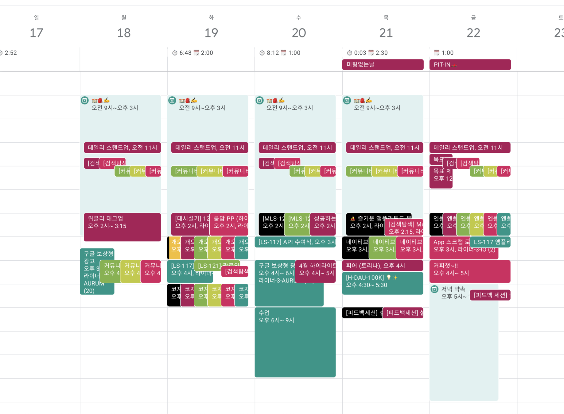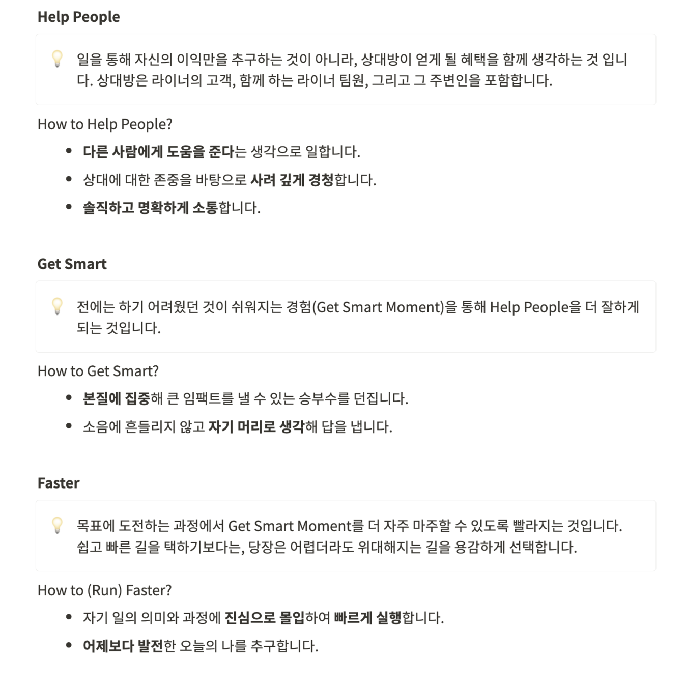 스탠드업, 태그업, 타운홀, 엔플위, 코드리뷰, 커피챗, 바이-위클리 피드백, 택소노미 수여식, 라이너 데이, 라이너 게임, 북 스터디