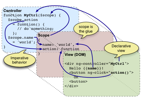 = -- Used to create a two-way binding to an object that is passed into the directive