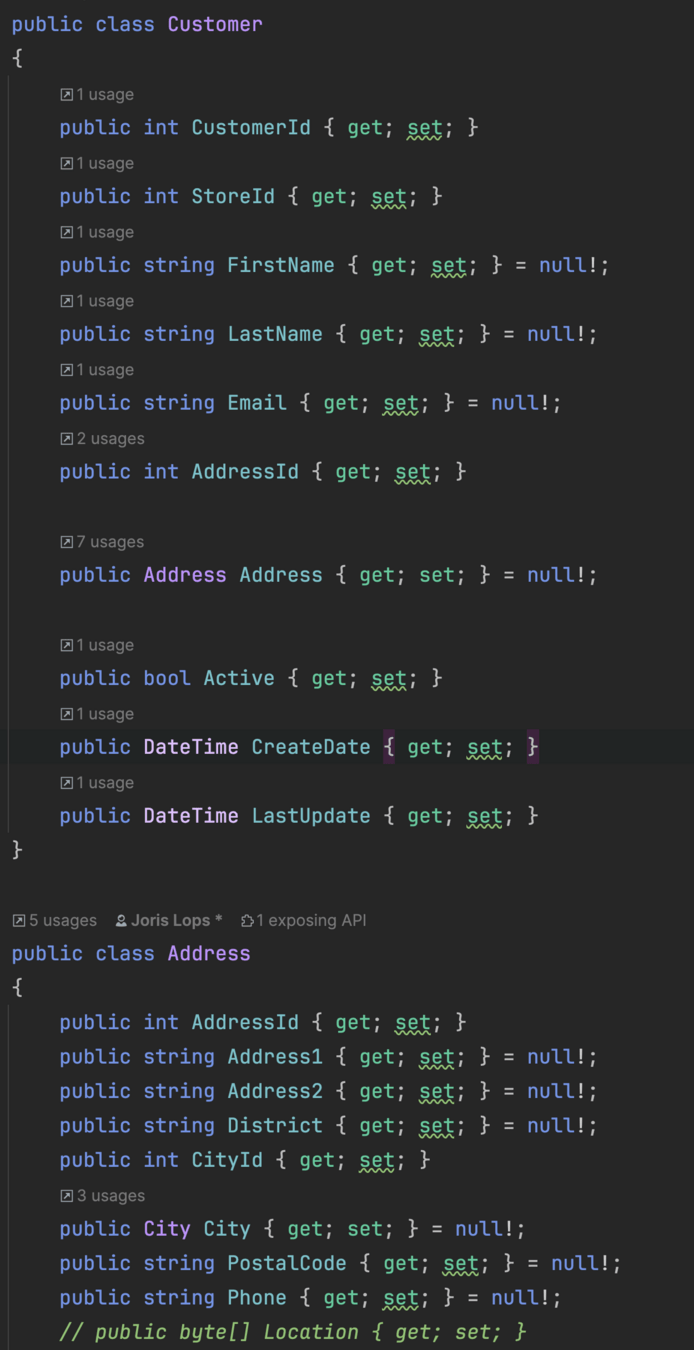 public string Lastname { get; set; } = null!;