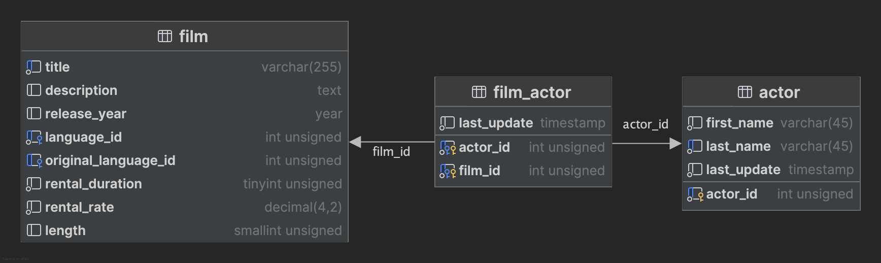 JOIN film f ON fa.film_id = f.film_id
