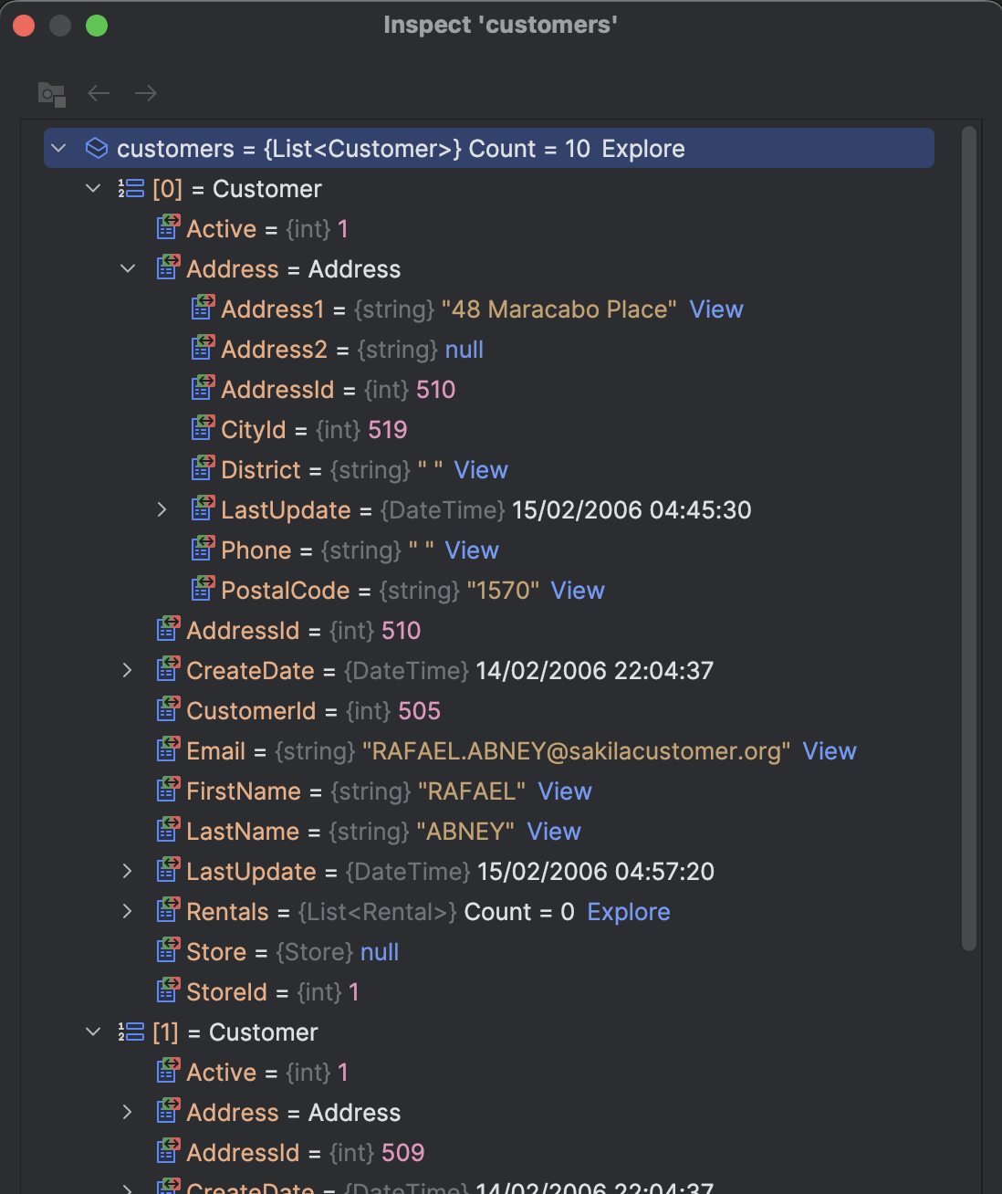 .Distinct() // don't forget to remove duplicates (each customer, rental, inventory, film combination)